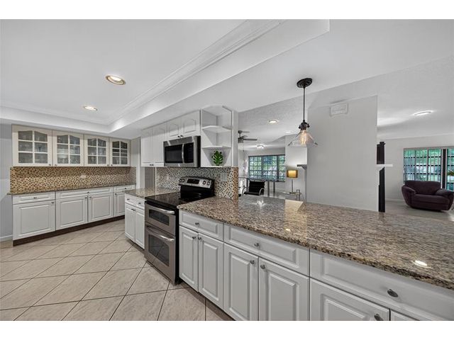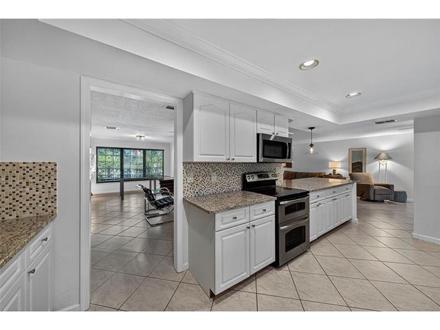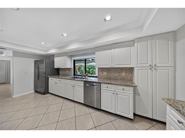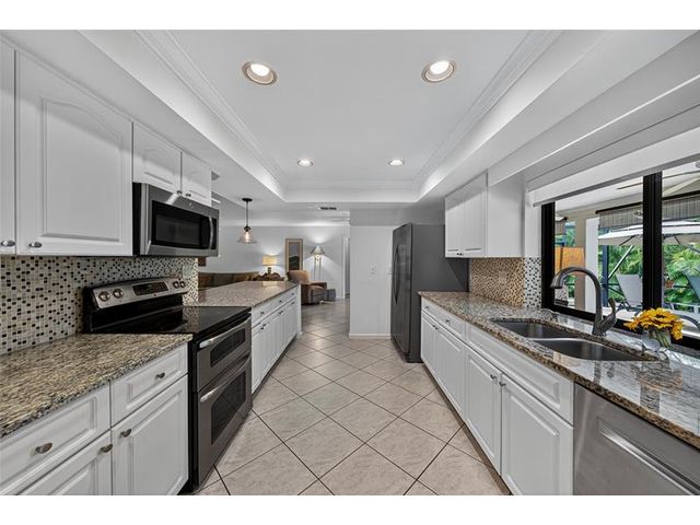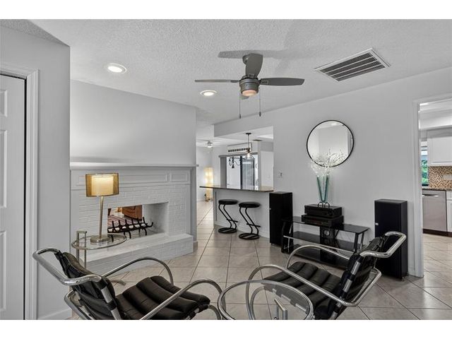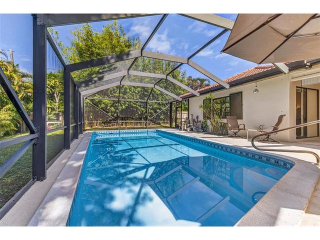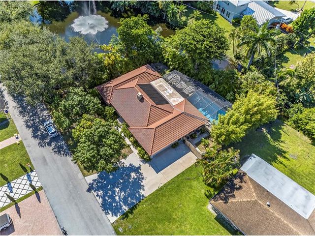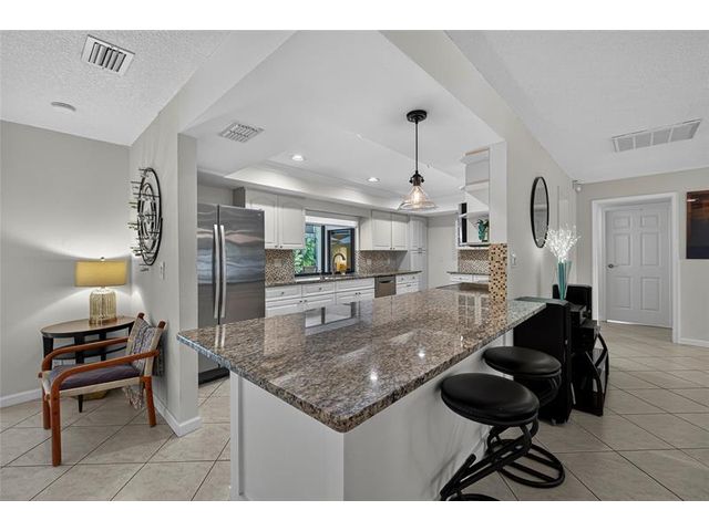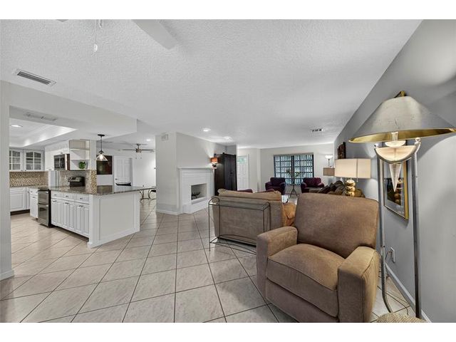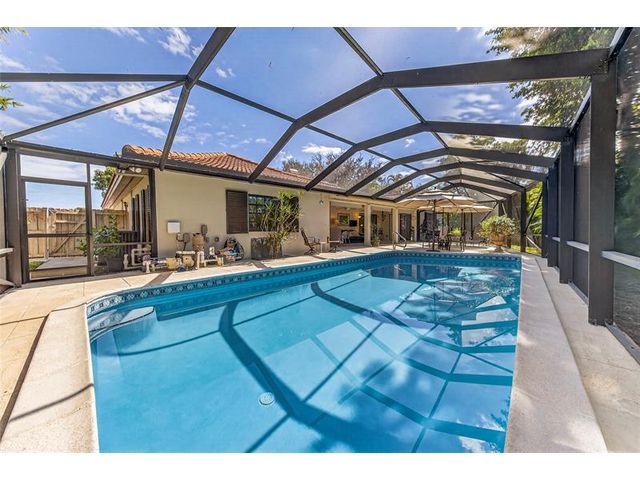 As you enter, leave the world behind & discover your private waterfront oasis. Nestled in the charming Albert Lakes neighborhood, this 3-bedroom, 2-bath pool waterfront corner lot home offers the perfect blend of comfort & serenity. LOW HOA. The classic kitchen features granite countertops, a tile backsplash, glass-front cabinets & abundant storage. A kitchen pass-through window lets you enjoy views of the screened pool & lush yard while entertaining or preparing meals. Stainless steel appliances include a refrigerator, double-oven range combo, microwave, and dishwasher. Step outside and enjoy the Florida lifestyle with the screened saltwater pool year-round with solar heating. Split bedrooms. Highlights: dual-sided fireplace, storm protection, laundry room, lush landscaping. 2001 Roof.