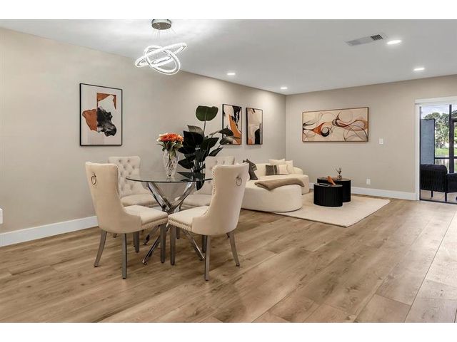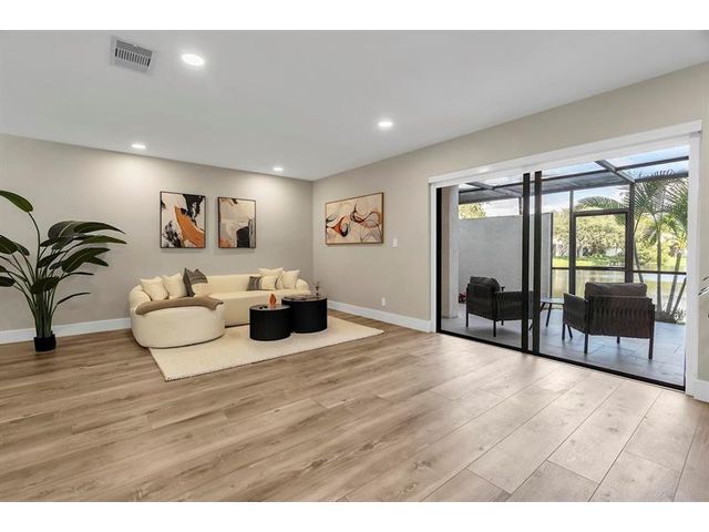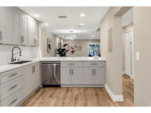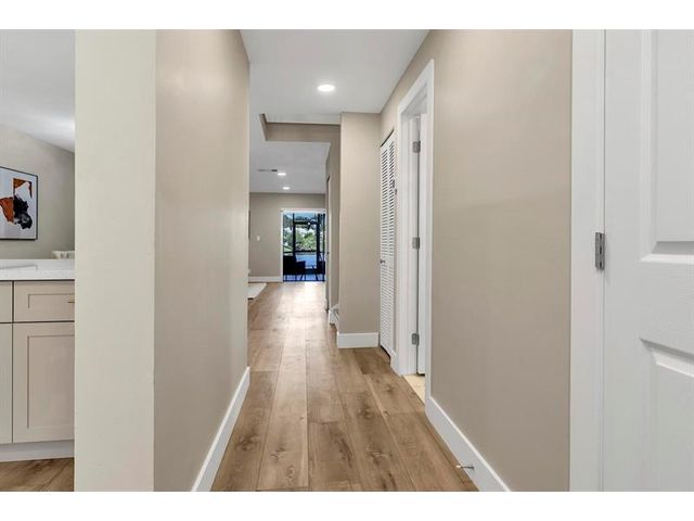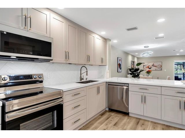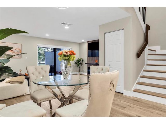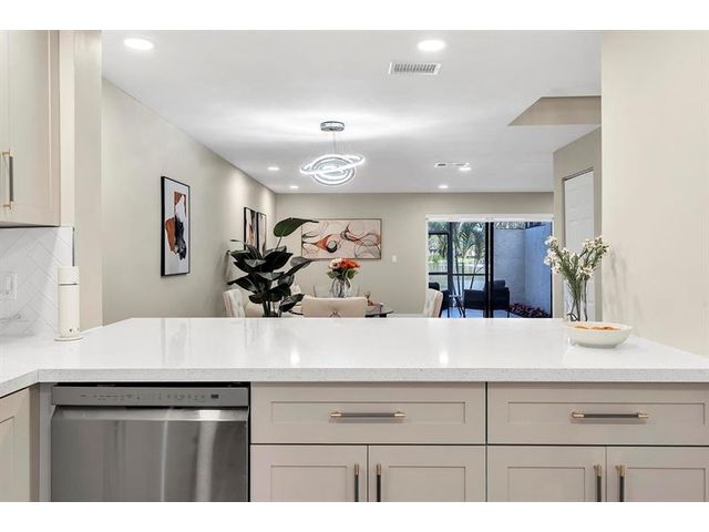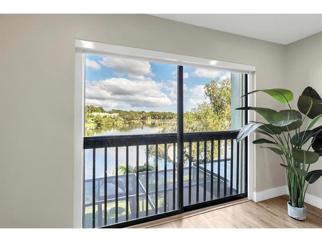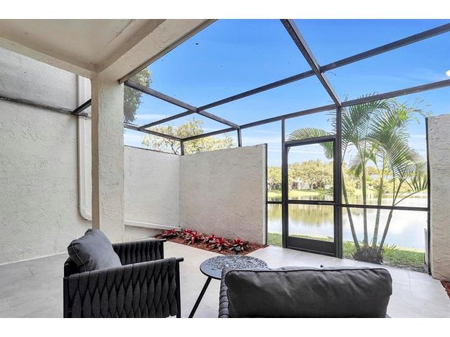 Welcome to Villa Agua, a stunning 3-bedroom, 2.5-bath corner unit townhome featuring impeccable manicured landscaping and breathtaking lake views from all over. Step inside to a beautifully decorated home with new kitchen cabinets, modern appliances, elegant flooring throughout, including the staircase and a beautiful screened, outdoor patio to enjoy the amazing lake views. This model-perfect home is move-in ready, waiting eagerly for its new owner and their toothbrush. Embrace the comfort, style, and tranquility of this exceptional residence — your dream home awaits!