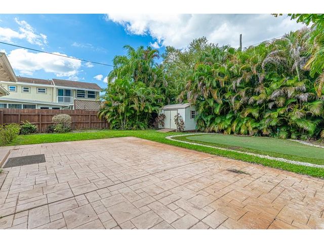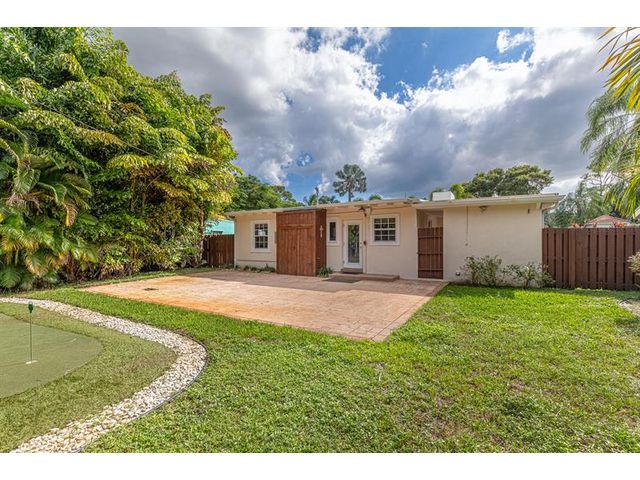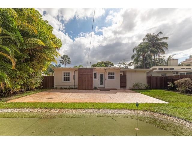 Charming 2-bedroom 1 bath home in East Fort Lauderdale captures classic mid-century style with modern potential. Timeless architectural details like vaulted exposed beam ceilings, original wood burning fireplace, alcove dine in kitchen. Florida Room is a Great Home Office. Fenced in private sanctuary with beautiful landscaping, large yard for entertaining, with Front and Back Patios. Large Shed with Cabinets and Shelving, plus another small shed and some Storage in the Laundry Area. Putting Green in the back yard. Lush green lawn and landscaping. Stamped Concrete Driveway. Great location minutes to downtown, Las Olas, Airport, Port Everglades and the Beach. Neighborhood has 2 parks with Volleyball, Tennis court, walking paths exercise equipment and a passive nature park on the New River.