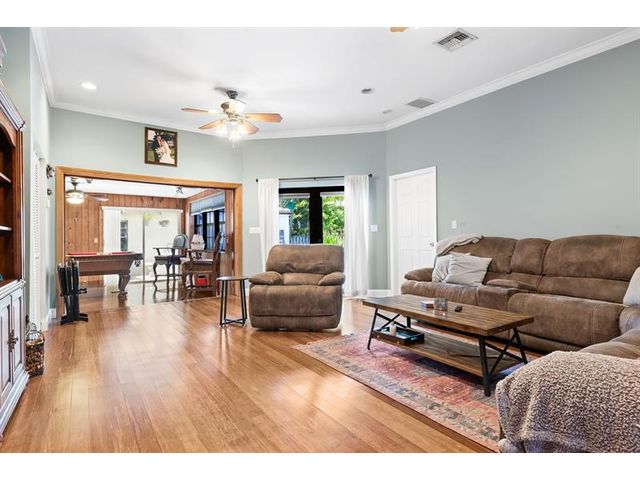 Welcome to Home Monroe - Spacious living near Downtown and the Beach! Here you will find charm with generous square footage and expansive living areas. This home offers your family and friends space to spread out and grow. From the Florida room as well as the Family room doors lead you to a great patio and pool area that is all fenced in. Creating a lovely seamless indoor-outdoor flow. You also have doors from the large primary to the pool and backyard. An oversized garage adds ample storage. Nestled on a beautiful tree-lined street, this home perfectly balances comfort, character and location as it's also walking distance to worship. We welcome you to come and see this Hollywood Lakes gem for yourself.