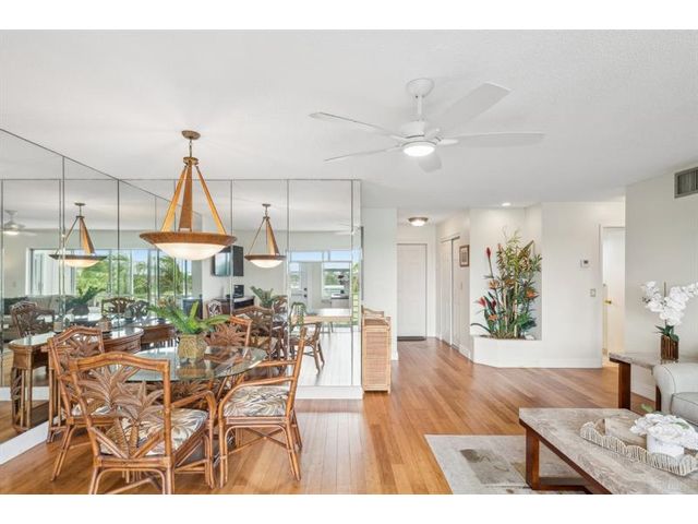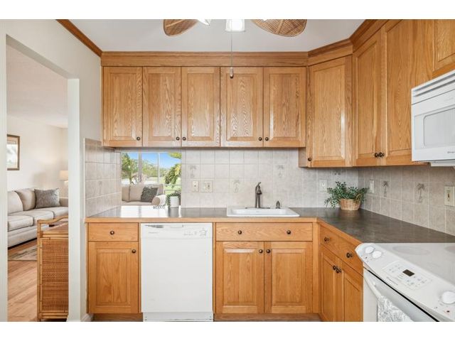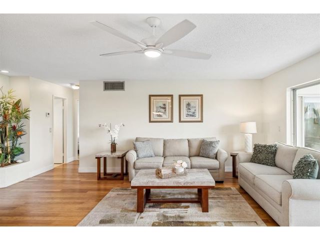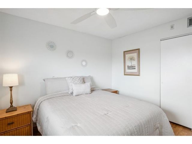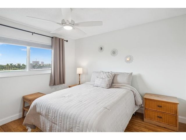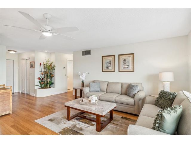 Move-in ready 2-bedroom, 2-bath condo in a peaceful 55+ community, perfect for year-round living or your home away from home. Enjoy your morning coffee from the 5th-floor balcony overlooking tropical views of the Greg Norman–designed Shell Bay golf course (not part of Fairway Royal but what an added bonus!). Condo offers large bedrooms, generous closets, stylish bamboo flooring, a remodeled primary bath, and upgraded lighting and ceiling fans. Impact windows in bedrooms and kitchen, accordion shutters on the patio. Building entry boasts new doors and Smart Home intercom system for guests and residents. The building also features a newer elevator for added comfort and convenience. The 50-year recertification has been paid in full by the seller.