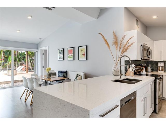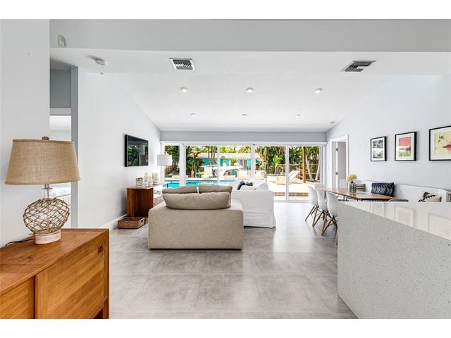 Welcome to Gill Isles! This beautifully remodeled 3-bed 2-bath home offers direct ocean access with a 65-foot seawall and 40-foot dock, plus, an oversized saltwater pool. Step inside and you’ll find a bright, open-concept layout with vaulted ceilings and abundant natural light. The modern kitchen features Samsung stainless steel appliances, quartz countertops, a breakfast nook, triple-door pantry, and custom cabinetry. Large porcelain tile floors, LED recessed lighting, and custom window treatments add to the sophisticated aesthetic. Equipped with impact windows and doors. Perfectly positioned in one of Fort Lauderdale’s most desirable boating communities, just minutes from downtown, Las Olas, and the Fort Lauderdale International Airport.