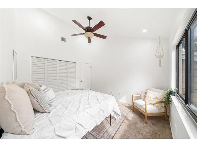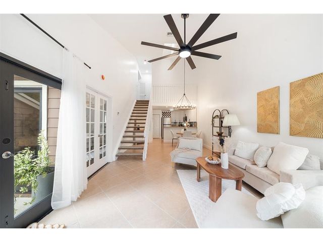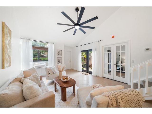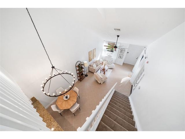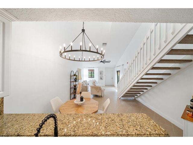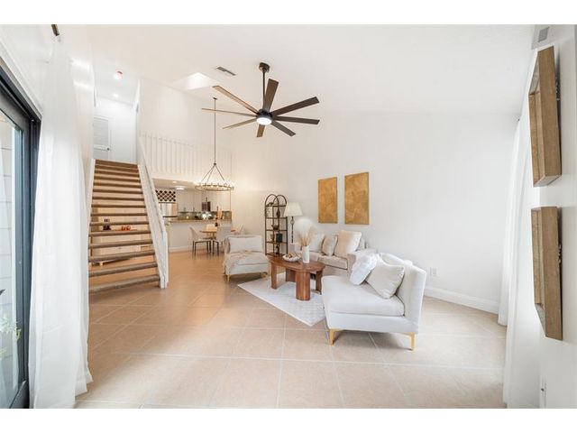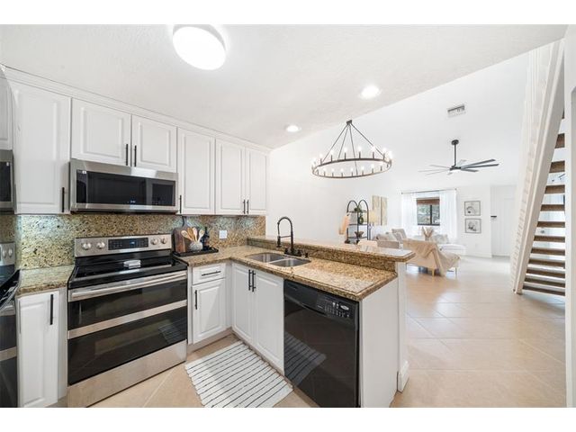 Welcome to modern living! This beautifully updated 3BR/2BA townhome features vaulted ceilings, multiple skylights, new flooring and NEW 2024 IMPACT windows and doors. Major upgrades include NEW recessed lighting, new OVERSIZED ceiling fan and matte lighting, 2025 electrical panel, and 2021 HVAC. In the kitchen, enjoy STAINLESS STEEL appliances, NEW oversized matte faucet, and breakfast bar expanding to the dining and living areas—perfect for open concept living and entertaining! The enclosed loft creates a spacious 3rd bedroom (no window) while the freshly painted walls, NEW upstairs flooring, and in-unit washer & dryer complete the modernized layout! Enjoy a fenced patio with storage closet, ideal for relaxing and hosting! All-ages community with pool, tennis courts, and LOW HOA.