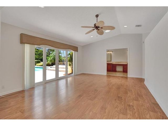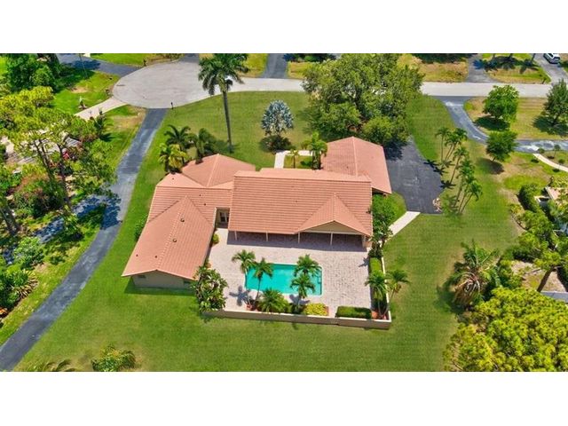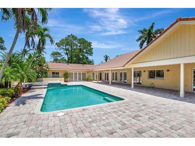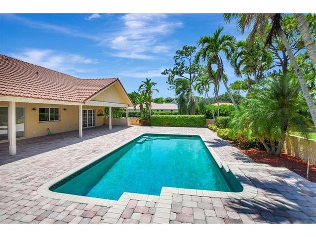 THE PERFECT ESCAPE ! Beautiful and spacious pool home which sits on an acre of land in a culdesac. Hardwood floors and ceramic tile throughout the living areas. Bright, open, vaulted ceilings, French doors that give this elegant home its character. Open kitchen island, wood cabinets, newer SS appliances, pantry overlooking the family room and pool. Living Room w/French Doors out to pool/patio. A separate laundry room, LG washer & dryer + plenty of counter space & cabinets. Master Suite has French doors that open out to pool, customized walk-in closet, adjacent sitting room, luxurious bathroom w/double vanity, jetted tub & separate shower. Oversized pool & paver patio. New AC, upgraded fixtures and pool pump. Walking distance to houses of worship, shops, restaurants, playgrounds, A+ schools