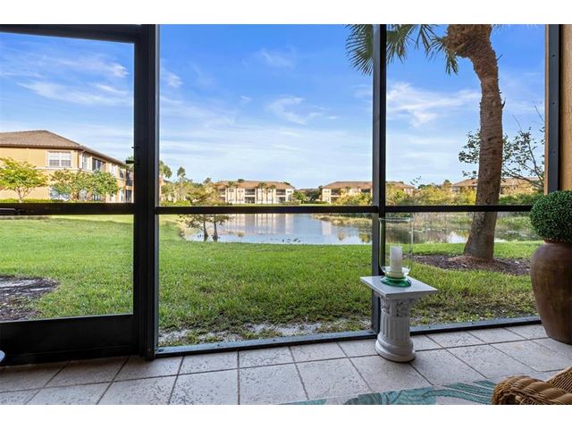 Amazing opportunity to purchase this beautiful 1st floor corner unit with wide lake views from the private screened patio**Shows better than new....This unit is in a great private corner of the community, close to pool and has tons of open space, top schools. Enjoy all the amenities in guard gate Heron Bay! Extensive tile, 9 ft. ceilings, stainless steel appliances, granite countertops, pantry, eat in kitchen, triple split bedroom plan, laundry room, screened patio, security system, 1 car garage, 2 parking spaces and more!