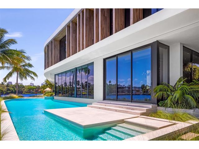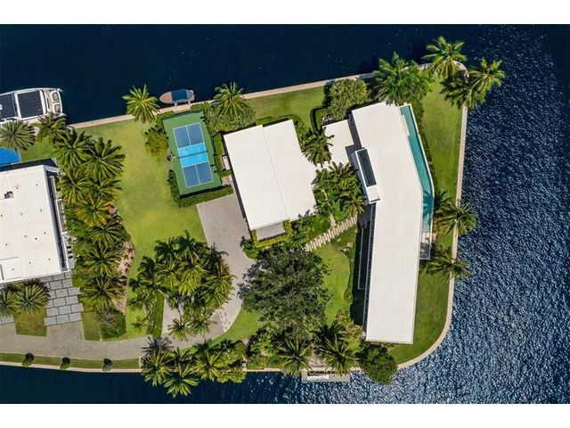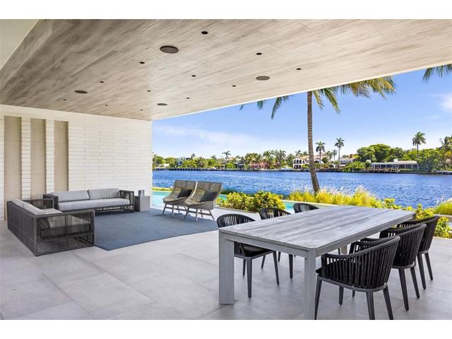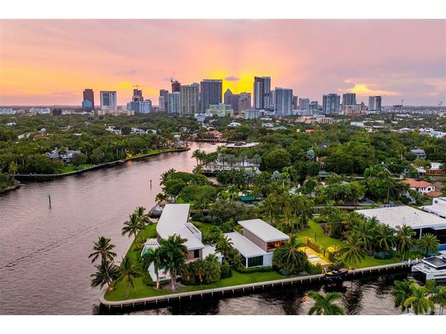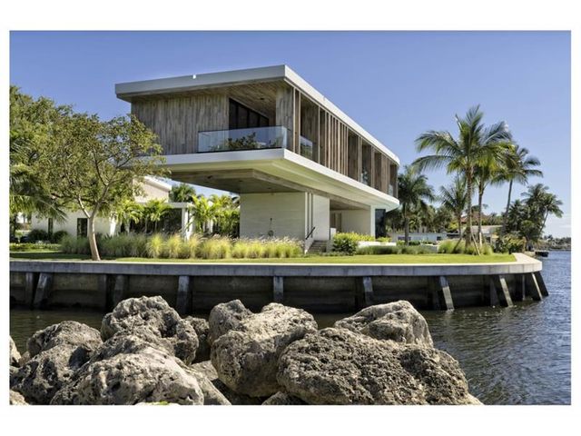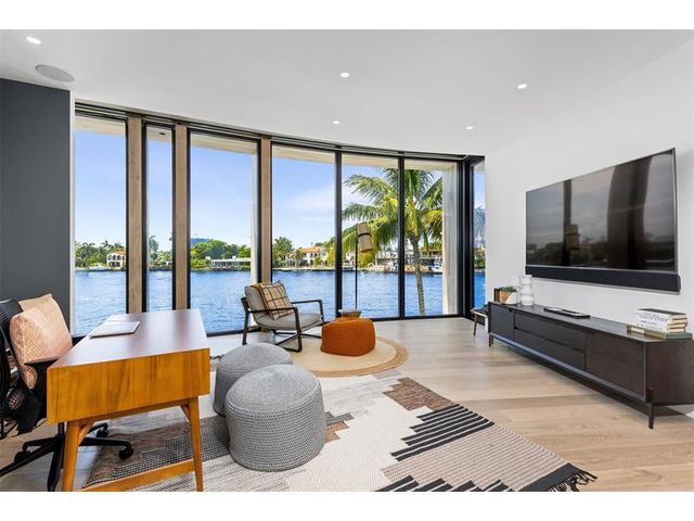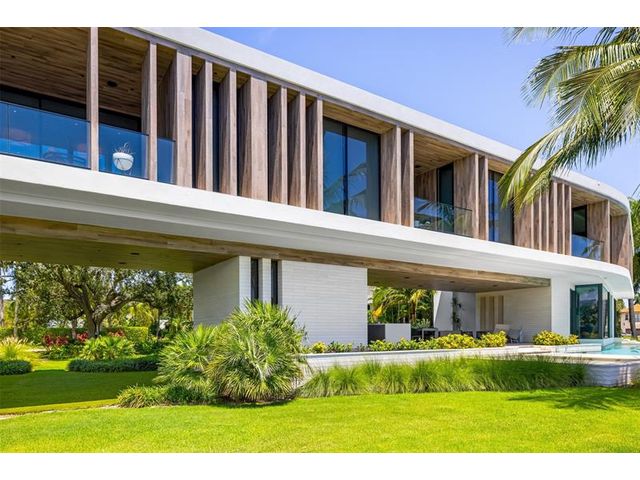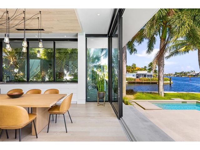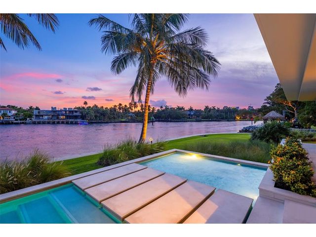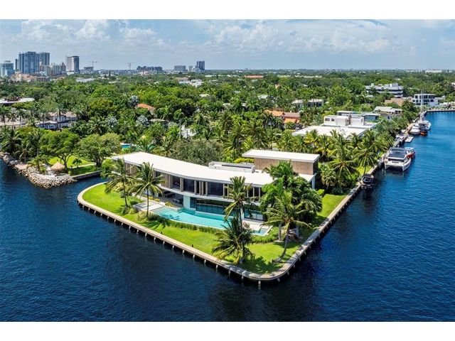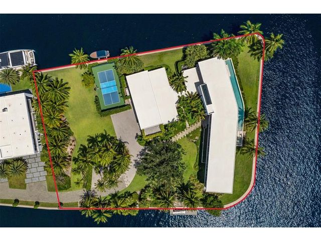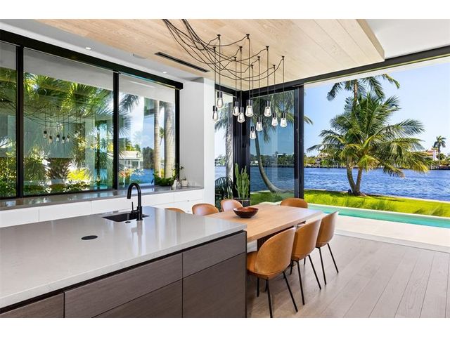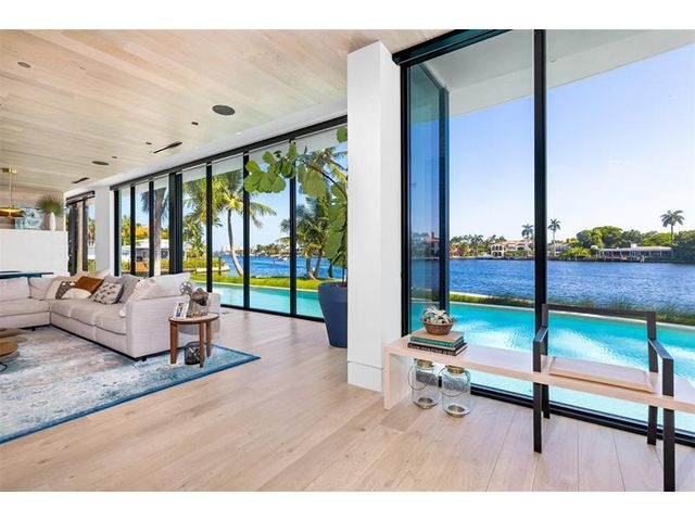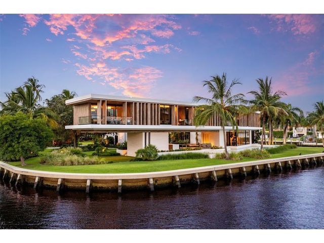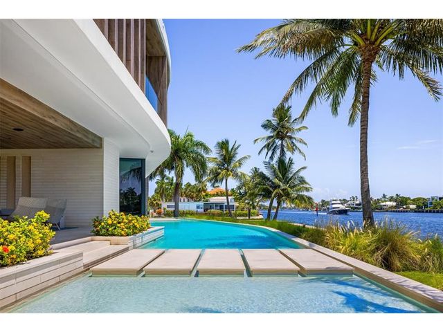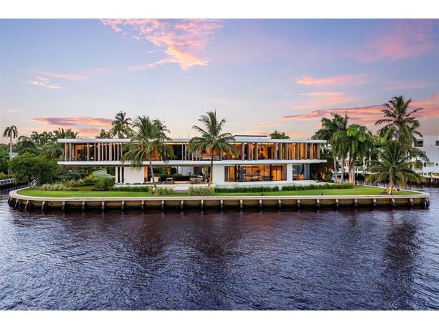 516 Mola. FTLs most unique, gated Peninsula Estate designed by renowned architect Max Strang & built by Bomar Builders, situated on 0.86 acres. Find panoramic views, a combined 640' of WF, a jaw-dropping floating Cantilever design & even a pickleball court! Notice a harmonious fusion of modern aesthetics and organic elements paired w/interior design by DKOR, crafted to complement the natural surroundings. Floor-to-ceiling windows & skylights grant natural light & Chef's Kitchen w/ hidden prep pantry w/ formal dining are perfect for entertaining. Be wowed by the Primary Suite's balcony w/New River views, gym, sitting room/office, expansive closet & spa-like bath. Home features include a full Apartment suite, movie theater, wet bar, European white oak wood floors & Savant/Lutron home system.
