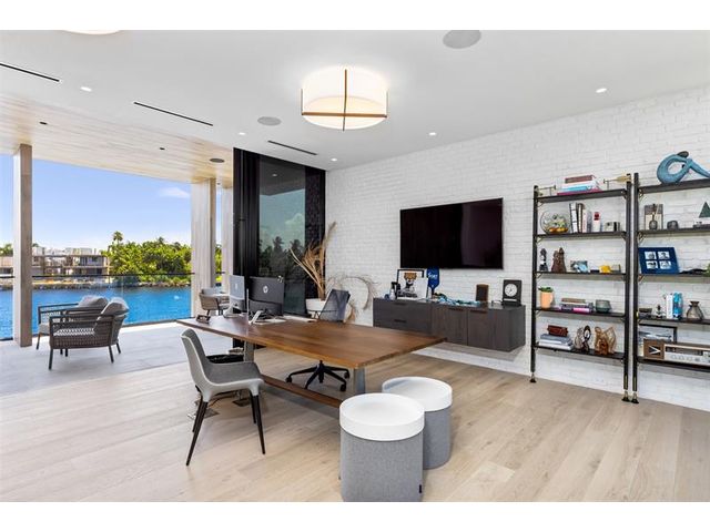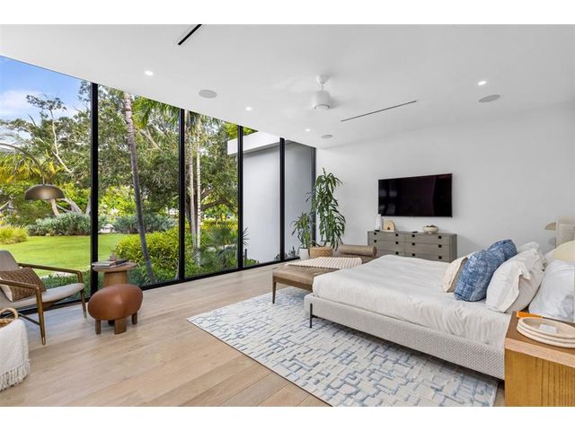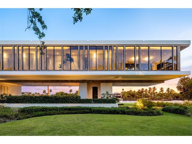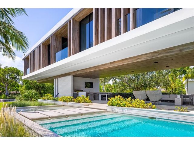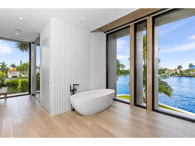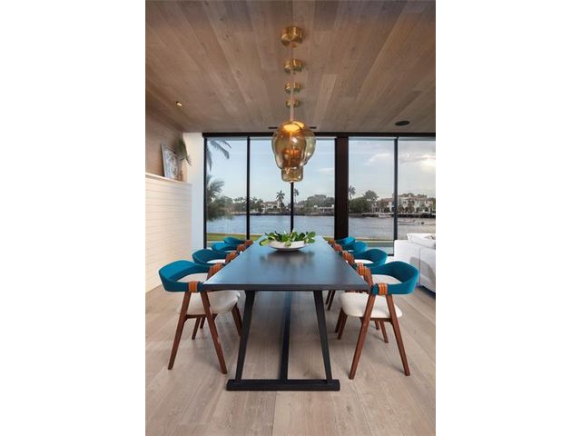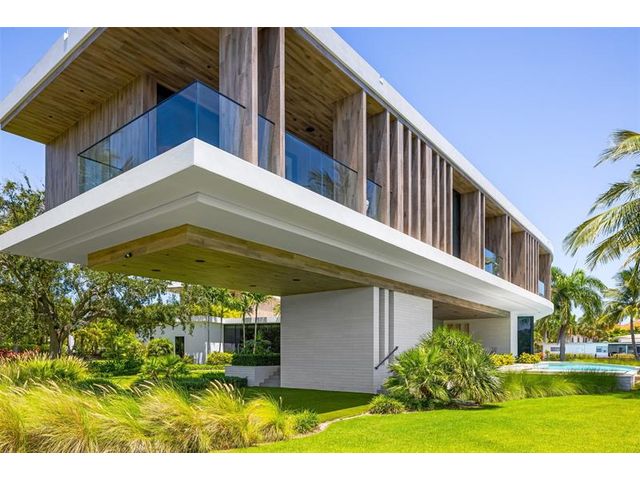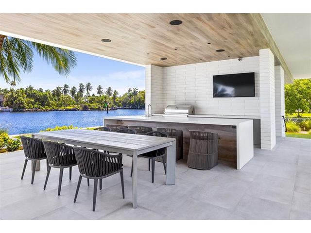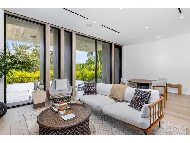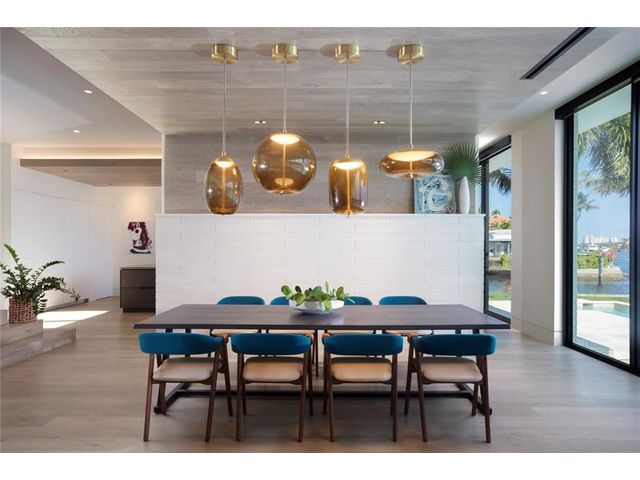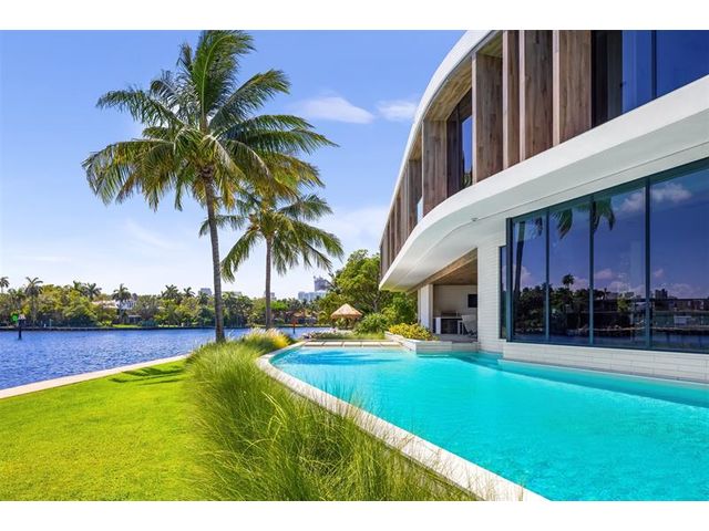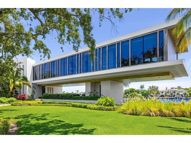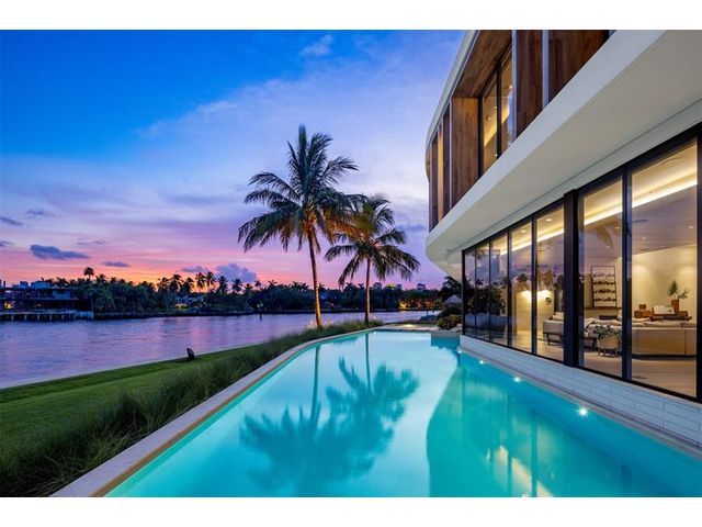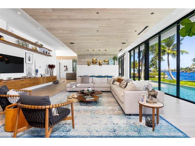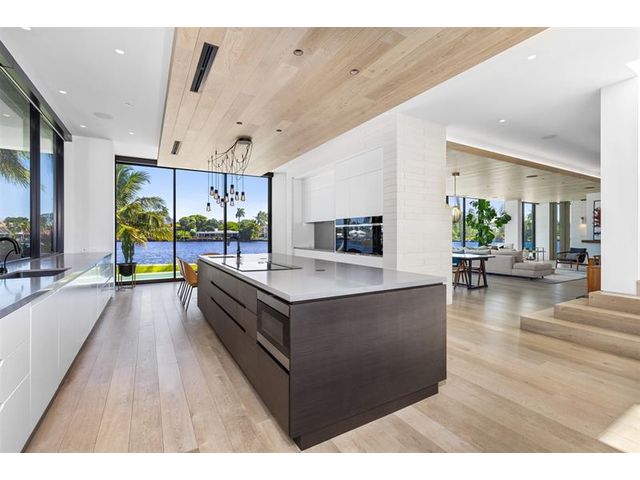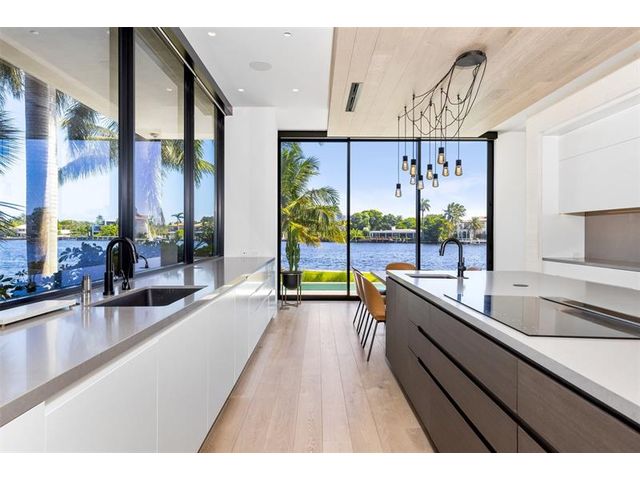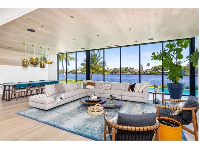 516 Mola. FTLs most unique, gated Peninsula Estate designed by renowned architect Max Strang & built by Bomar Builders, situated on 0.86 acres. Find panoramic views, a combined 640' of WF, a jaw-dropping floating Cantilever design & even a pickleball court! Notice a harmonious fusion of modern aesthetics and organic elements paired w/interior design by DKOR, crafted to complement the natural surroundings. Floor-to-ceiling windows & skylights grant natural light & Chef's Kitchen w/ hidden prep pantry w/ formal dining are perfect for entertaining. Be wowed by the Primary Suite's balcony w/New River views, gym, sitting room/office, expansive closet & spa-like bath. Home features include a full Apartment suite, movie theater, wet bar, European white oak wood floors & Savant/Lutron home system.