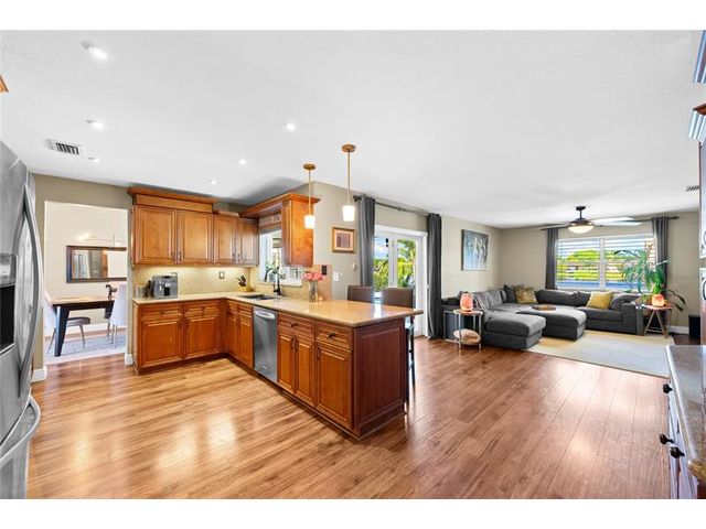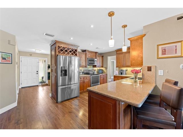 This home in the heart of Copper City is the epitome of luxury and comfort. Walking distance to Griffin Elementary and close to many parks in the neighborhood. This renovated 3/2 home features 2125 Sq Ft. The Kitchen has granite countertops, all wood cabinets, soft-closing drawers, Whirlpool stainless steel appliances and an added pantry. This home has a salt water pool system, a pool heater, and a built in grill outside. Gorgeous water views from almost every window and incredible sunsets. Hunter Douglas blinds and shades, remodeled bathrooms with Jacuzzi tubs in both bathrooms and a separate huge walk in shower in the master along with a large walk in closet. Partially converted garage with utility room, storage space and office space. This home has NO HOA and can be sold fully furnished