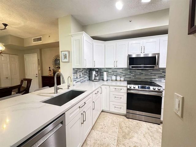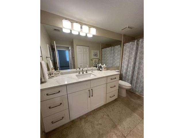 Experience ideal urban living at The Courtyards in CityPlace! This beautifully updated 3-bedroom, 2-bath condominium — one of only five 3-bedroom units in the community — features two master suites, travertine tile flooring throughout, and an open layout designed for comfort and style. The updated kitchen includes quartz countertops, a redesigned pantry, and stainless steel appliances. Both bathrooms feature upgraded vanities with quartz counters. The Courtyards is a gated, pet-friendly community offering resort-style amenities: pool and spa, fitness center, business and social rooms, concierge, on-site management, and secure garage parking (two spaces included). Short-term rentals permitted up to 12 times per year (30-day minimum), providing excellent flexibility for seasonal or