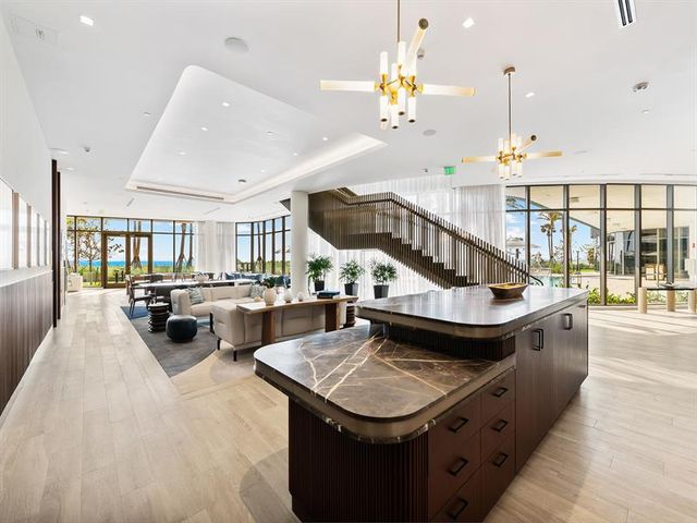 Feel the ocean from every angle open the east terraces to hear the waves, breathe salty air. This residence feels like a private beachfront retreat where the outdoors blends with your living space. This furnished, like new southeast corner unit offers 2,600 sq. ft. of light filled interiors wrapped in floor to ceiling glass with private elevator entry. The split floor plan ensures privacy, the primary suite has direct ocean views and a large walk-in closet, while two bedrooms sit on the opposite side. A den suits a media room, office, or guest area. Just above sea level, the home surrounds you with the calming soundtrack of the shore. Amenities include private beach, two pools, a fitness center with spa, sauna, and yoga studio, plus a coffee lounge, theater, wine room, club room.