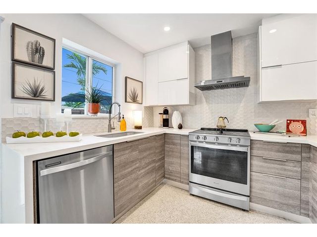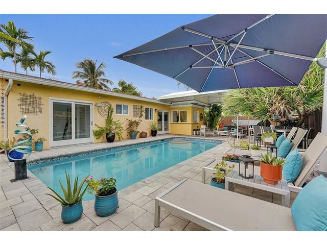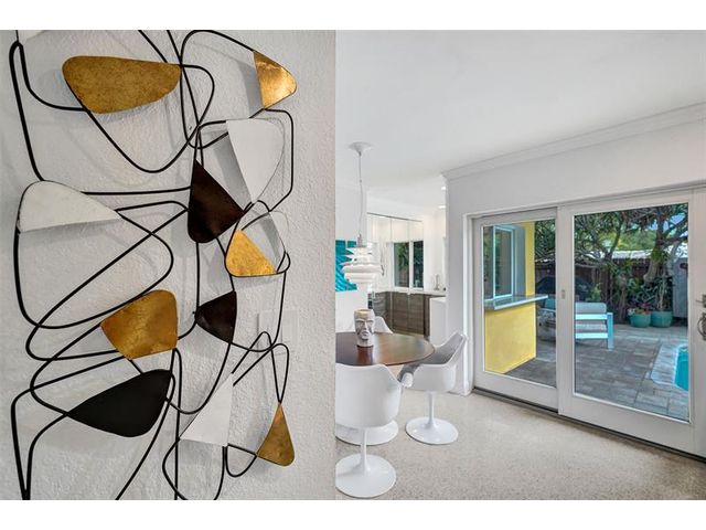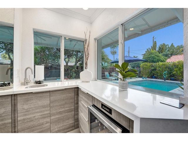 STUNNING CORAL HEIGHTS MID CENTURY POOL HOME COMPLETE W/ POLISHED TERRAZZO FLOORS THRU OUT & BRICK IMPACT WALL IN LIVING ROOM. ALL IMPACT WINDOWS & DOORS & NEW ELECTRICAL PANEL. MAIN TILE ROOF 2014 & FLAT ROOF 2021. ALL CAST IRON PIPES REPLACED W/ PVC. NEW EAT IN KITCHEN W/ QUARTZ COUNTERS, DESIGNER BACK SPLASH, STAINLESS STEEL APPL & SEPARATE BAR NOOK W/ QUARTZ STORAGE, BEVERAGE COOLER & WINDOWS OPENING UP TO PATIO FOR ENTERTAINING. LUSH TROPICAL REAR YARD W/ HEATED POOL, 19X17 VAULTED WHITE CANVAS AWNING W/ 3 FANS, SEPARATE HOT TUB W/ STEREO & SPEAKERS, & LG EXTENDED PAVER PATIO & OUT DOOR SHOWER , WIRED STORAGE SHED W/ LIGHTING & OUTLETS. SIDEWALKS ADDED ON NORTH & SOUTH SIDE. INTERIOR & EXTERIOR LIGHTING CONTROLS ARE KASA SMART CONTROLLED REMOTELY. SEE ATTACHMENT LIST