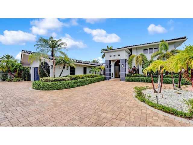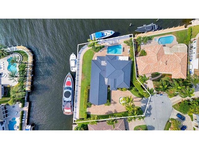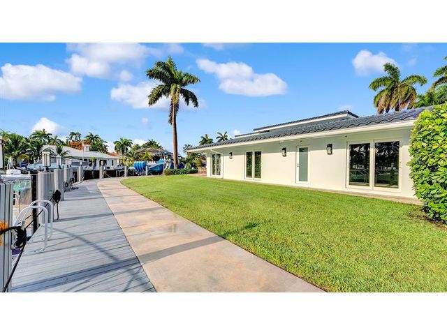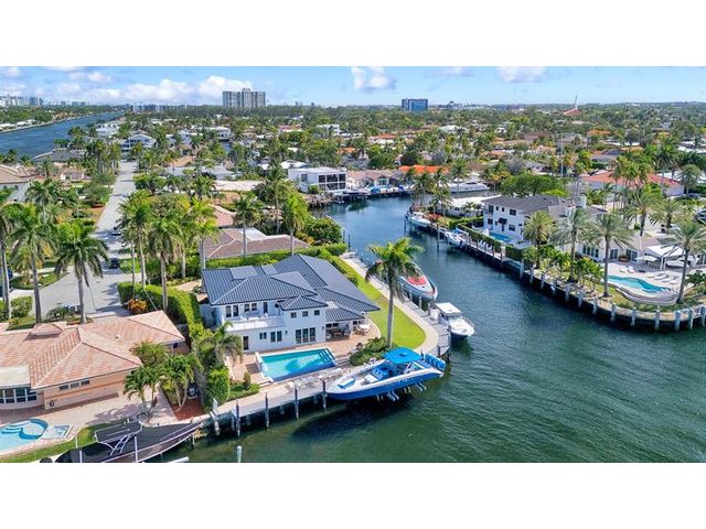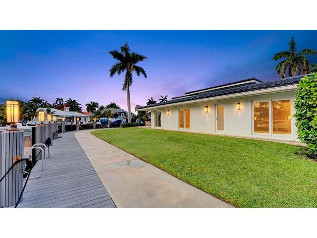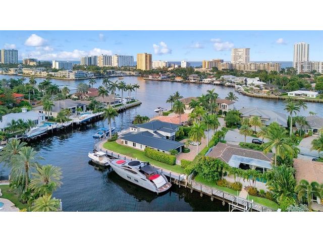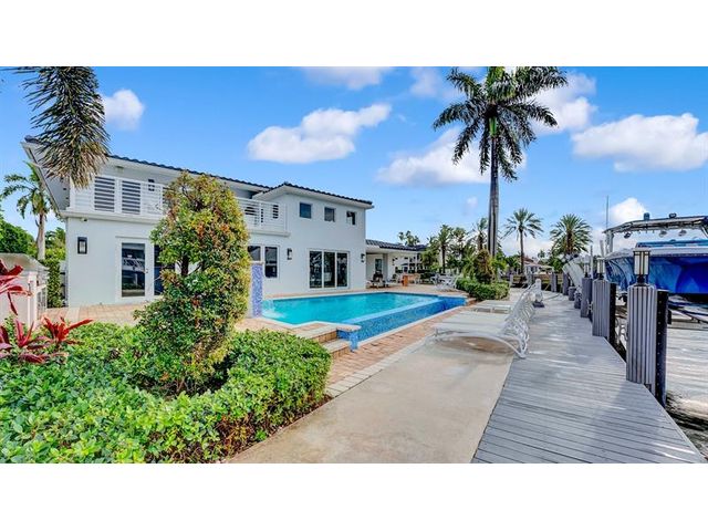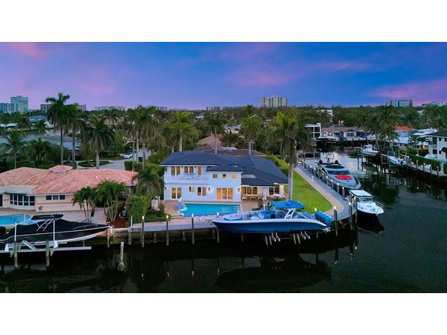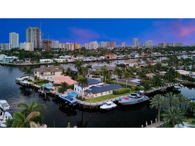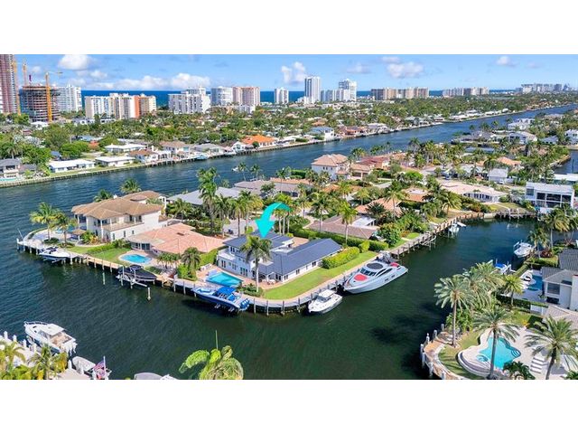 Yachtsman Dream!! 225' of dock space, point lot, deep water, direct ICW, turning basin, 27,000 LB lift, electric and water on the dock, 10 min to Hillsborough inlet. This home will house any size boat!! 5 bed/4.5 bath with an office, in-law and or crew quarters with its own private entry. The layout of this home is perfect for entertaining, the kitchen has a 6 burner Wolf range and a huge island and Sub Zero appliances. The grand foyer, stacked stone fireplace, wet bar, two family rooms that open to the Lani, the home was designed so each room has a view of the intracoastal. Upstairs is the primary that opens up to a 20x30 private balcony that overlooks the pool and the canal. If you have been looking for a private, waterfront estate to house your yacht and entertain in this is it!!