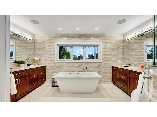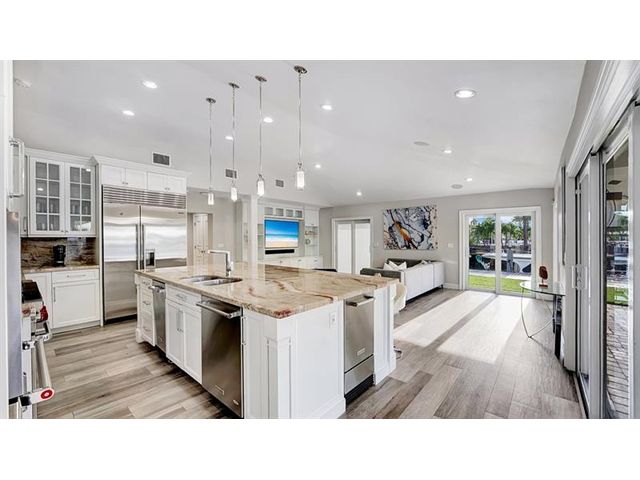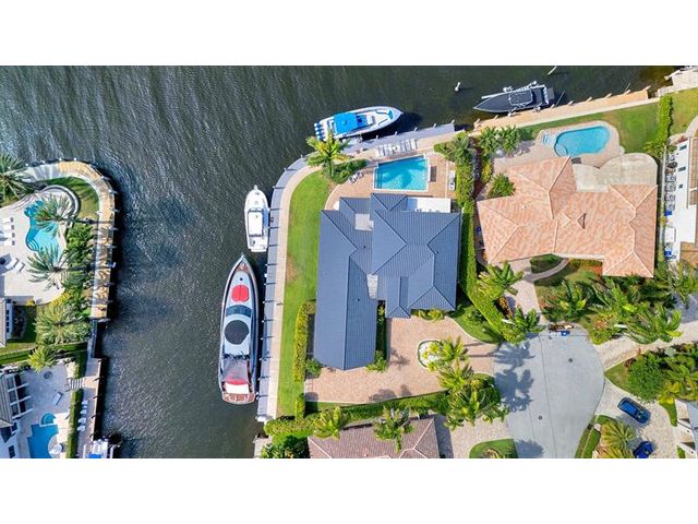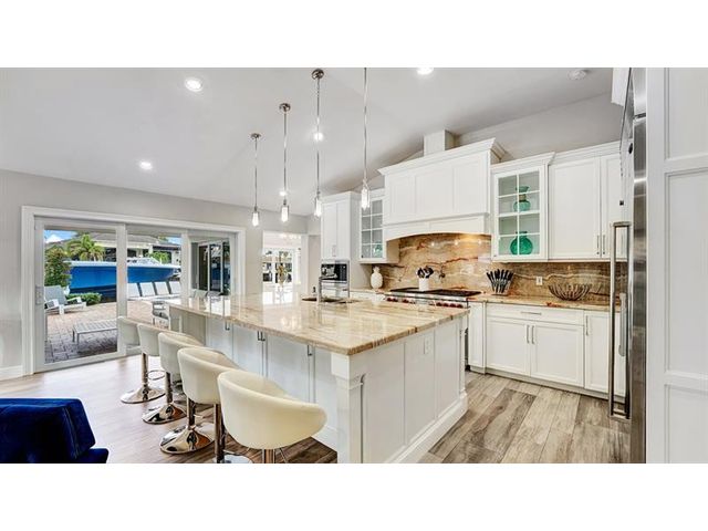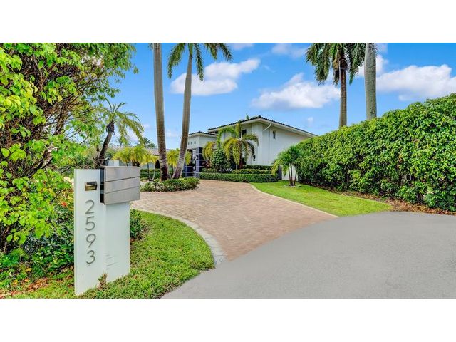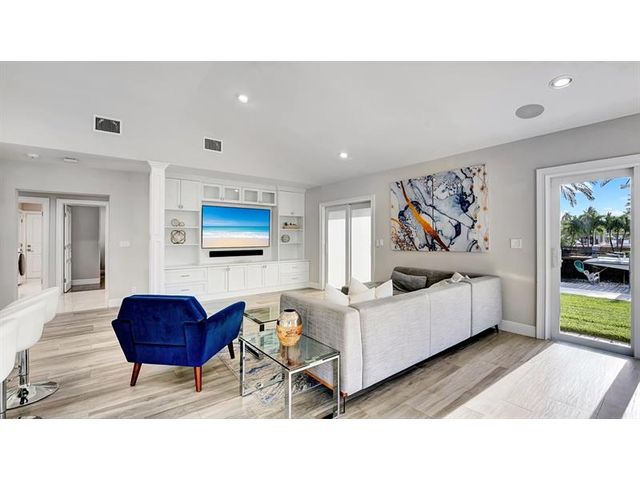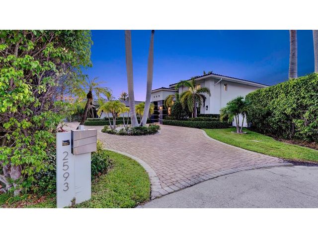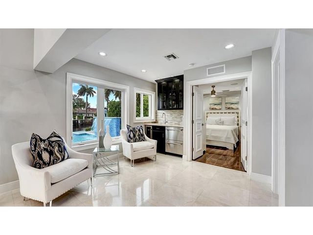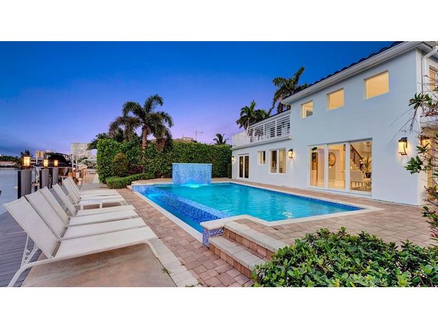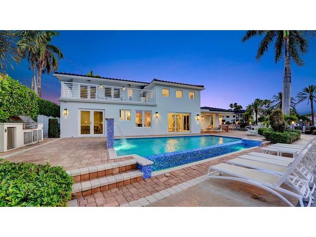 Yachtsman Dream!! 225' of dock space, point lot, deep water, direct ICW, turning basin, 27,000 LB lift, electric and water on the dock, 10 min to Hillsborough inlet. This home will house any size boat!! 5 bed/4.5 bath with an office, in-law and or crew quarters with its own private entry. The layout of this home is perfect for entertaining, the kitchen has a 6 burner Wolf range and a huge island and Sub Zero appliances. The grand foyer, stacked stone fireplace, wet bar, two family rooms that open to the Lani, the home was designed so each room has a view of the intracoastal. Upstairs is the primary that opens up to a 20x30 private balcony that overlooks the pool and the canal. If you have been looking for a private, waterfront estate to house your yacht and entertain in this is it!!