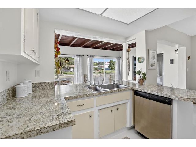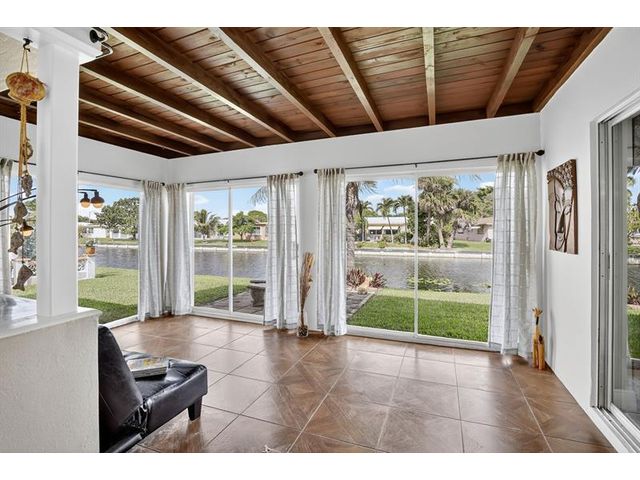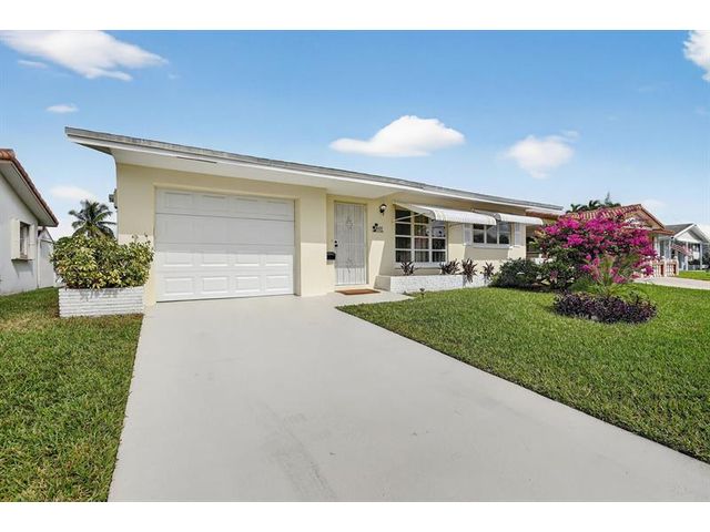 Bright & Spacious 2-Bedroom Gem on Wide Canal in The Mainlands! Welcome to this beautifully maintained 2-bedroom, 1-bath home with 1-car garage, perfectly situated on a wide canal lot in the desirable 55+ community of The Mainlands. Enjoy an open floor plan & glass enclosed Florida room that creates a bright and inviting living space, ideal for relaxing or entertaining! Stainless Steel Appliances w/ Dishwasher & an Owned Water Filtration System! Large Rectified porcelain floors throughout, neutral paint, beautifully decorated. Meticulously maintained. Take in peaceful water views as you walk through the door. Enjoy the community’s wonderful amenities: a sparkling pool and clubhouse. Conveniently located near shopping, dining, & major highways, this home offers both comfort and convenience.