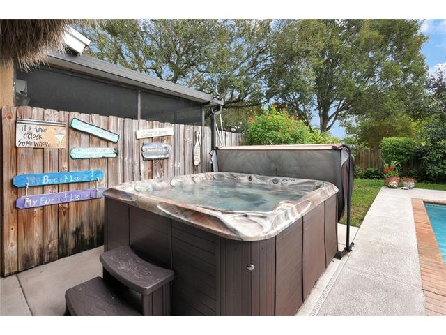 Your private oasis awaits in Rock Creek! This 3-bed, 2-bath and office/den home offers 1,993 sqft of thoughtfully designed living space on a 10,964 sqft corner lot, featuring a sparkling private pool, hot tub, and lakefront screened lanai perfect for entertaining. Enjoy evenings by the working fireplace, or host friends at your own outdoor Tiki bar. Recent upgrades include new appliances, newer AC, and brand-new gutters. Surrounded by top-rated schools, walking trails, playgrounds, and parks. All the lifestyle perks Rock Creek is known for. Move-in ready and ready for entertaining! Don’t miss your chance to make this dream home yours.
