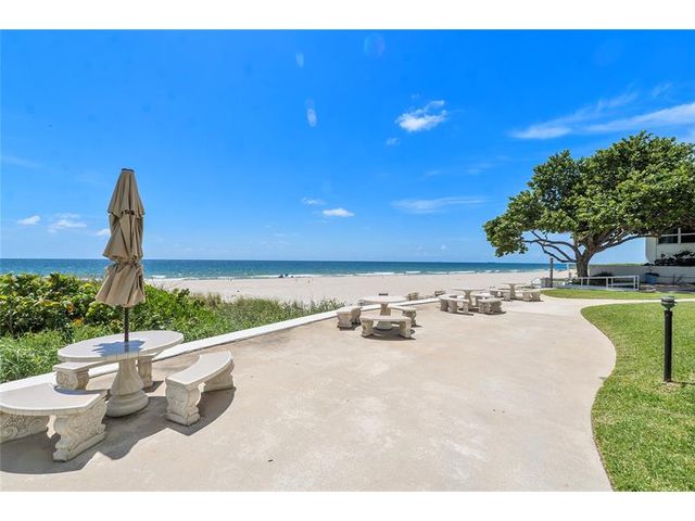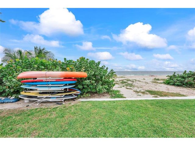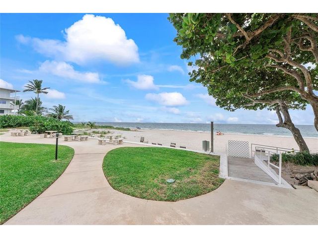 Beautifully updated condo on the sand! This bright, airy southeast-facing corner residence overlooks the garden and pool, just one quick flight down and you can put your toes in the sand. From the spacious balcony, enjoy partial ocean views to the left, watch the sunrise over the Atlantic, and relax as the sun sets through the palms. The open layout offers two oversized primary bedrooms with walk-in closets and ensuite baths, plus a designer kitchen with quartz countertops and high-end stainless-steel appliances. Features include Bosch washer/dryer, impact windows, gated beach access, secure lobby, heated pool, entertainment room, and assigned parking. Unfurnished and move-in ready for coastal living at its finest.