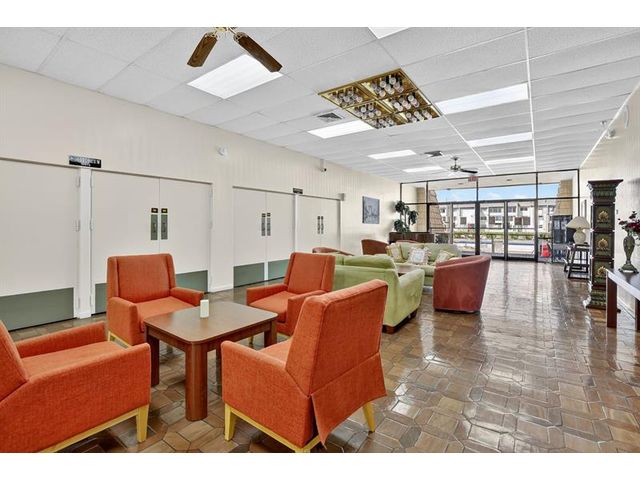 Gorgeous 2/2 with serene lake & clubhouse views in Sunrise Lakes II! This bright,spotless unit features ceramic & wood floors, upgraded baths, and a Florida room with impact windows overlooking the lake. Well-maintained building with no assessments new roof, elevator & fresh paint! Laundry room with new washer/dryer nearby. Enjoy an active 55+ lifestyle with clubhouse, pool, tennis, walking trails & more. Close to shopping, dining & bus lines. Move-in ready and beautifully maintained!