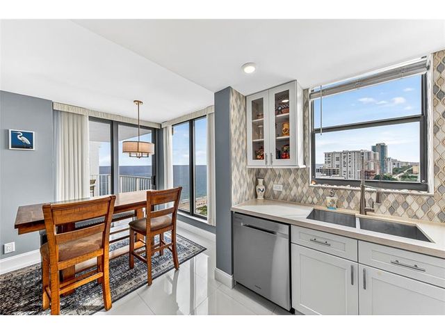 SPECTACULAR OCEAN and INTRACOASTAL VIEWS from this FULLY RENOVATED 2 Bedroom / 2 Bath Condo located in the HEART of POMPANO BEACH! This unit boasts an EXPANDED NEWER KITCHEN with QUARTZ Countertops and STAINLESS STEEL Appliances. Fully UPDATED bathrooms. WASHER and DRYER inside the unit! INCREDIBLE CITY and LAKE SANTA BARBARA VIEWS, OCEAN by day, CITY lights by night. Sunny SOUTH EXPOSURE with BEAUTIFUL SUNRISES and SUNSETS! Located on a WIDE section of SANDY BEACH in the POPULAR POMANO AEGEAN. Forty Year inspection COMPLETE! A short distance to the POMPANO PIER and FISHING VILLAGE with many shops and restaurants. HEATED POOL and HOT TUB, DIRECT BEACH ACCESS, fitness center and more. Must see to appreciate!