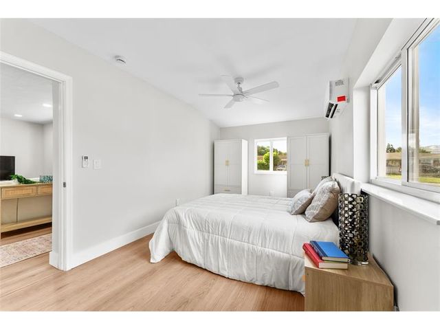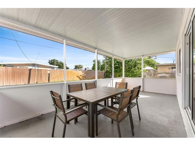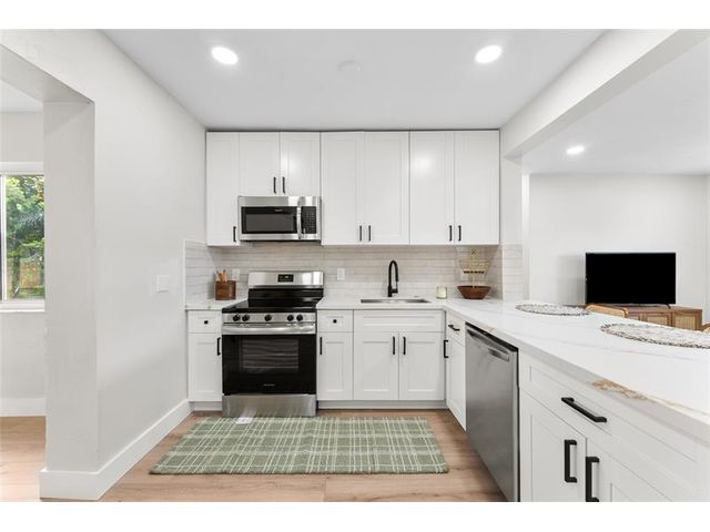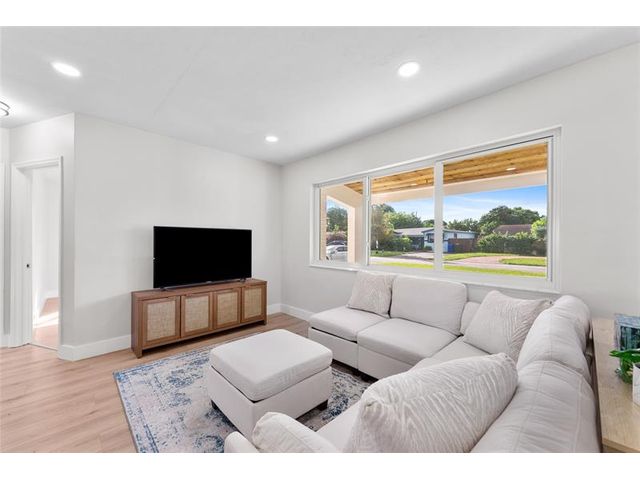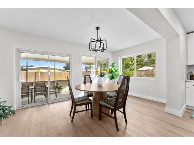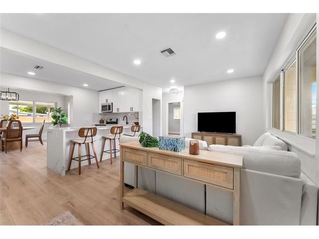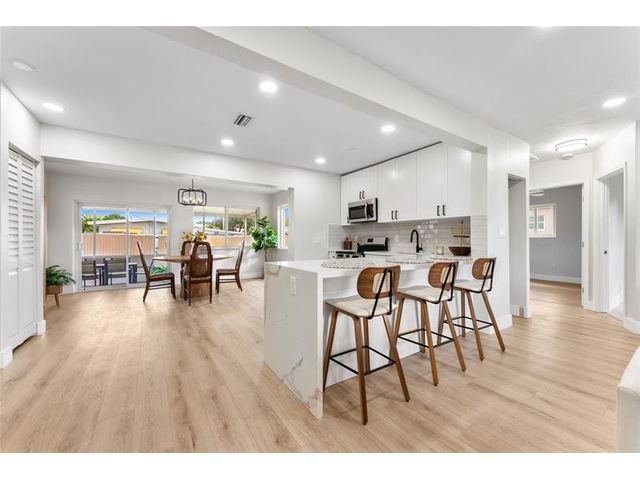 Fully renovated and move-in ready! This bright, open-concept home features a new kitchen with shaker cabinets, quartz countertops, stainless steel appliances, and a large peninsula with seating. Enjoy a seamless flow from the kitchen to the living and dining areas—perfect for entertaining. Modern finishes throughout include luxury vinyl flooring, updated lighting, and a stunning bathroom with a walk-in shower and illuminated mirror. The spacious covered patio overlooks a large fenced yard with a fire pit and with plenty of room for a pool. New roof, impact windows, and updated systems add peace of mind. Conveniently located near shops, schools, restaurants, and major highways!