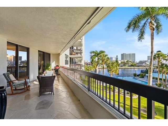 FULLY FUNDED RESERVES WITH NO ASSESSMENTS -40-YR Certification with SIRS, garage & concrete restoration ALL completed. 2024 roof & refurbished generator, 2025 cooling tower, Painting & waterproofing completed. All the major building SIRS items have been addressed. Absolutely stunning designer condo has natural light with Intracoastal and heated pool views. Nothing to do here but move-in! Open floor plan, 2 primary suites, split bedrooms with custom walk-in closets and lavish spa like baths. Tile flooring, custom pocket doors, fire sprinklers and W/D laundry room. Chef's kitchen, SS appliances, Quartz counter tops & recessed lighting throughout. Impact doors, 39' balcony & garage parking just steps from your unit. 2 pets 25 lbs. or less. Maintenance includes fiber optic internet & Cable.