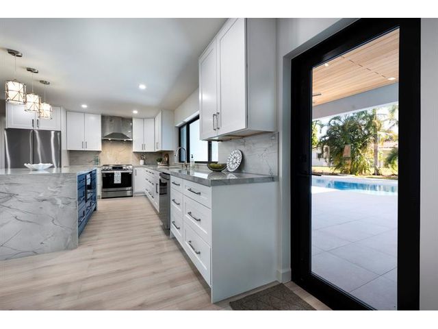 !Exquisite coastal-themed 4-bed, 3.5-bath fully reconstructed top-to-bottom! 2,300 sf of luxurious comfort, open-concept w/ gourmet kitchen: custom cabinetry, large island, top-tier stainless appliances. Primary suite has TWO walk-in closets, spa-like bath & double doors out to gorgeous pool patio. PVC underground plumbing (no cast-iron), all new electrical thru-out, custom kitchen & bath fixtures. Full impact windows. 4 oversized ensuite bdrms w/ large closets! Enjoy seamless indoor-outdoor flow to huge lanai w/ 10 ft ceiling. Beautifully landscaped & fully fenced. Every detail attended to including finished air-conditioned garage! The perfect combination of meticulous design, versatile function & coveted location, the best South Florida & sought after Lighthouse Point offers! Act fast.