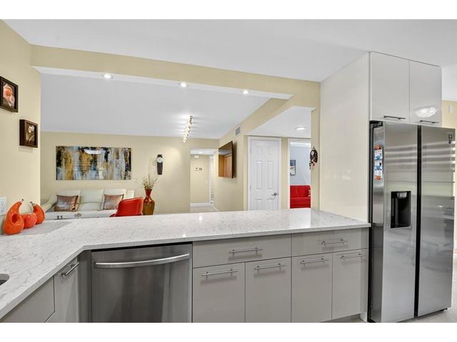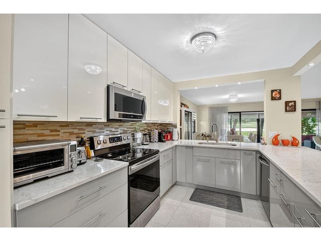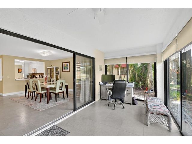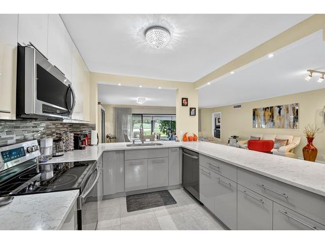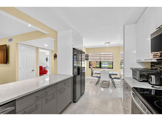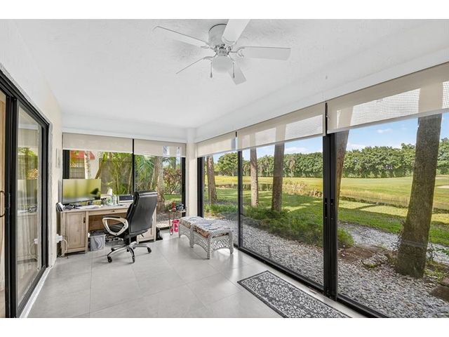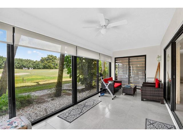 Welcome to a stunning ground floor large 3 bedroom, 2 full bathroom corner condo overlooking the lake and golf course. Abundance of light and open spaces layout with spacious living and dining areas, newly designed eat-in kitchen, large primary suite, and screened big Florida room with sliding doors. Fully redone, with modern accents and high-end finishes, no popcorn ceilings throughout, new designed blinds with remote control,custom made walking closet. Same ceramic tiles throughout. New appliances, water heater, and Air Conditioner with 10 years transferable warranty. You have an option to join membership at the Indian Spring Country Club offering resort style amenities. Separate large storage room near the entrance. Walking distance to places of worship and short drive to the beach.