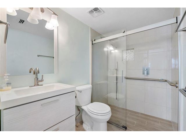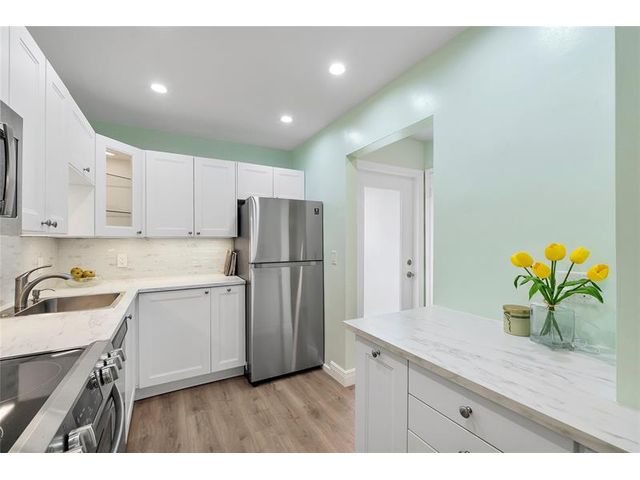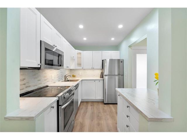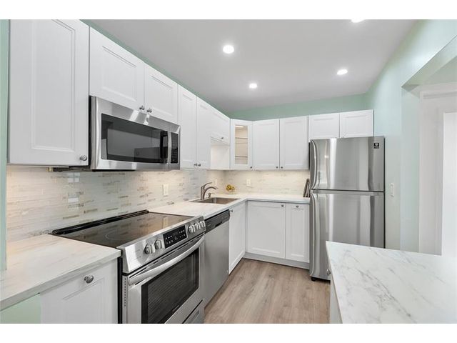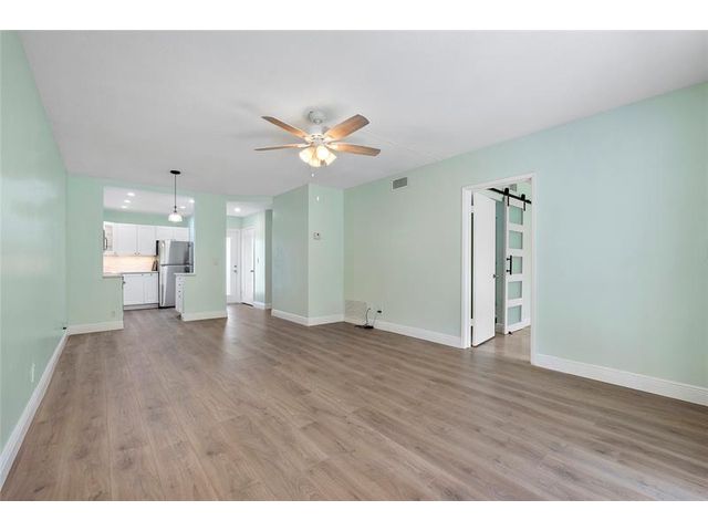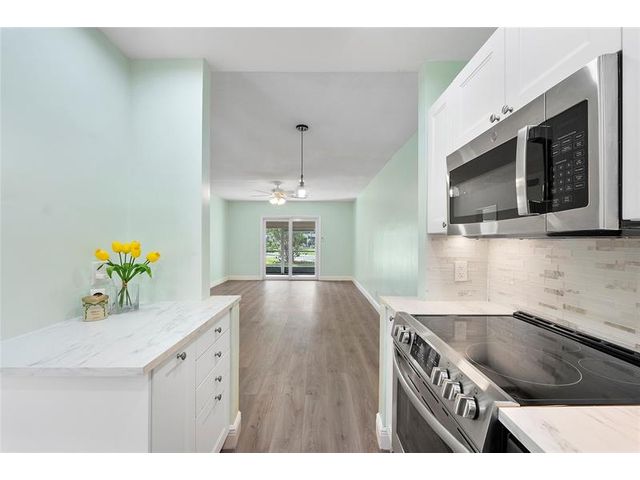 Beautifully remodeled ground floor 2 bed 2 bath condo in Lighthouse Point with assigned parking at your door. Renovated with top-quality materials, the open kitchen features stainless steel appliances and modern cabinetry. Luxury laminate floors, tile baths, and a primary bedroom with en-suite and barn doors to maximize space. Two walk-in closets and primary bath with walk-in shower and grab bars for persons with limited mobility. New impact windows and sliding door for peace of mind. Private patio with direct access to pool, clubhouse, and community areas. 55+ community with heated pool, putting green, shuffleboard, bocce, and BBQ area. One buyer must be 55+, others 18+. Perfect for seasonal or year-round living near beaches, shopping, dining, and entertainment. Low HOA and move-in ready!
