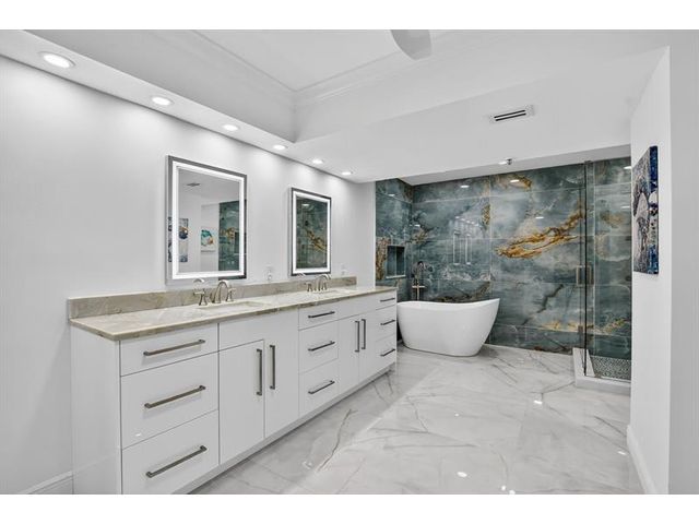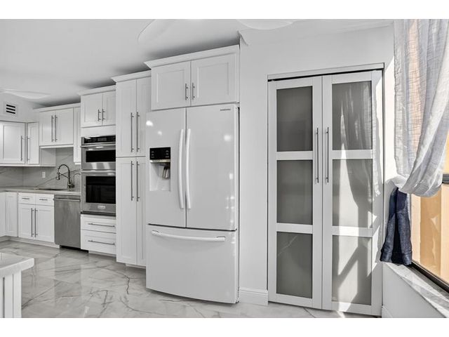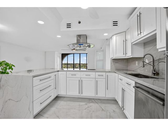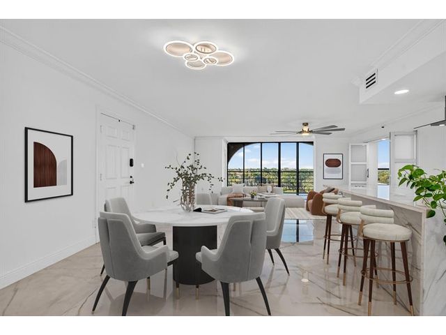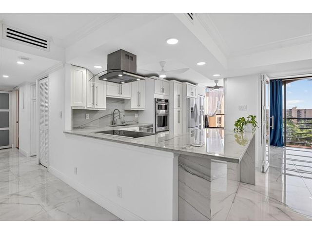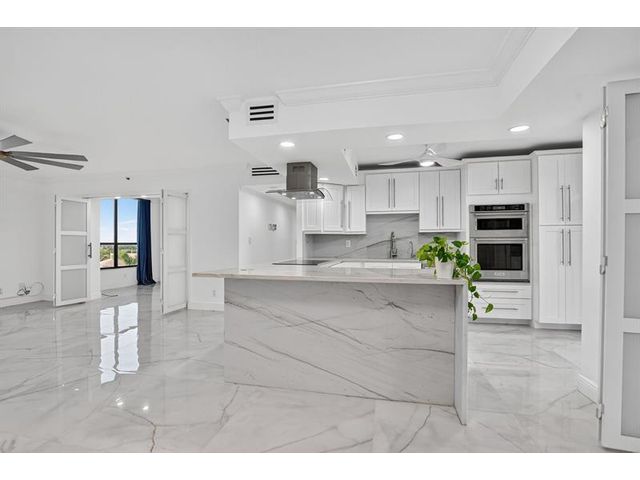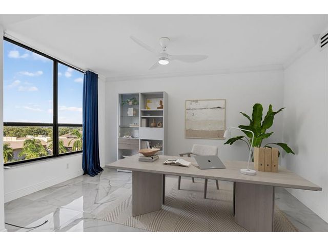 Amazing Condo with spectacular Views, Vistas, and Sunsets. Spacious Primary bedroom-bathroom suite. Large walk-in. Third bedroom currently a den / office, can easily be converted to 3rd bedroom. Three FULL bathrooms. Recently, completely updated, new AC, water-heater, Bosch cook-top, stacked clothes washer and dryer combo, Kitchen-aid wall oven with microwave, and new Bosch dishwasher. Both patios glassed / screened in bringing the floor-plan under AC to 2150sqft. Use of updated private pool cabana, private pool, hot-tub, exercise room, and card room. Upfront parking and storage area. Optional Membership at the Boca Pointe club.