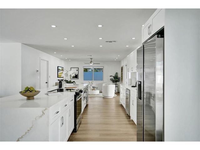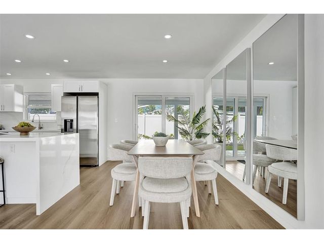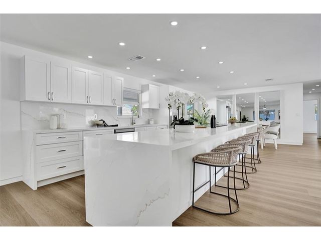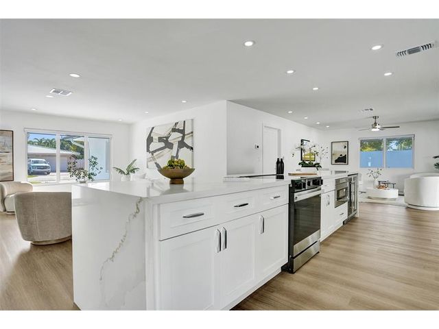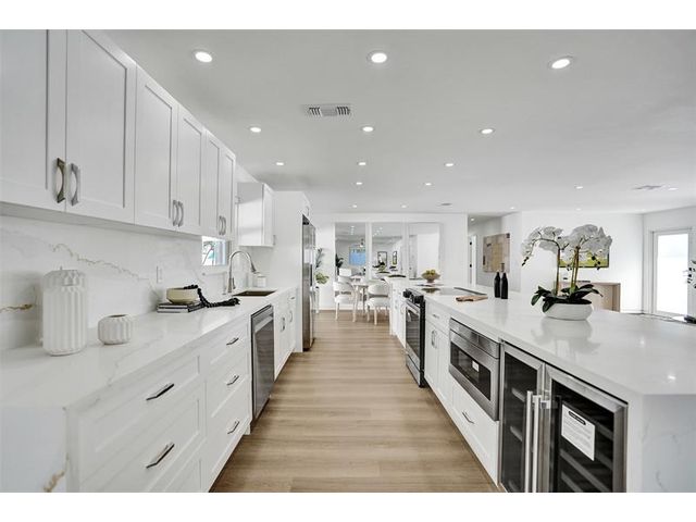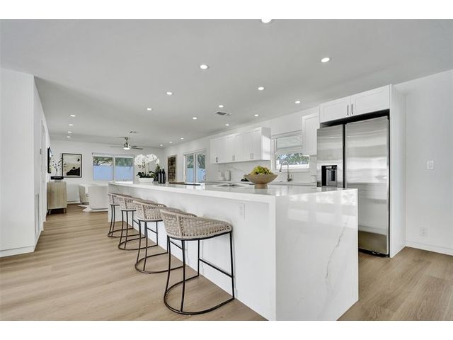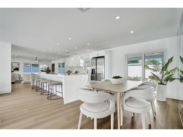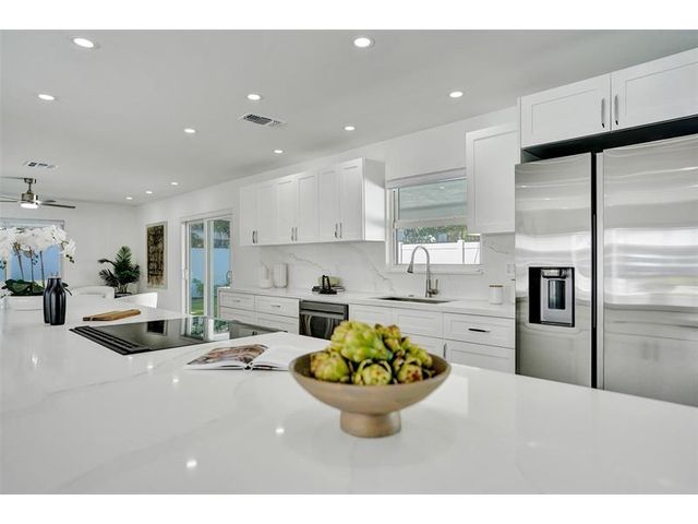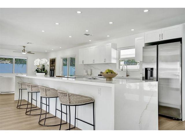 Welcome to 699 NE 70th St! Situated East of Federal Highway, in the exclusive + highly sought after community of Boca Harbour, this reimagined 3 Bed + 2 Full Bath masterpiece has been professionally designed and meticulously remodeled throughout. Updates include all new impact windows + doors, new flooring, new plumbing, new electrical, etc. The open and oversized chef's kitchen is nothing short of spectacular and features a breathtaking 15' island + counter dining, all new cabinetry + new appliances + beverage wine cooler. The primary suite features an all new en suite bath with custom oversized shower + direct rear lounge access. The spacious + private rear lounge features and oversized covered patio terrace + all new natural turf + new jacuzzi spa. Will not last. Let's Take A Look!