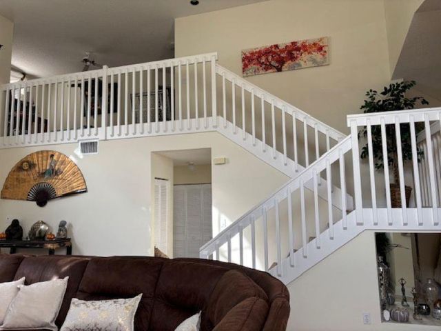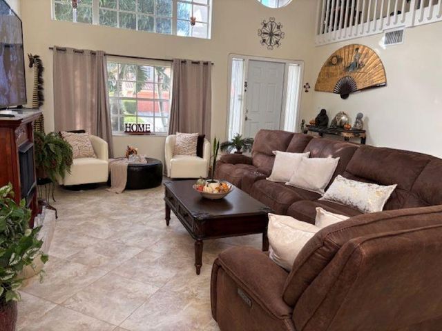 Welcome Home to this beautiful oasis located in The Estates at Windchime Lakes, a private gated community. Updates include roof, CAC, exterior painting, and enclosed patio. This home has an open floor plan with high ceilings, primary bedroom and laundry on first floor. The kitchen is equipped with custom wood cabinets, granite countertops, stainless steel appliances, tiled floor, and sliding glass doors that look out onto the lake. Living room and dining room have high ceilings, tiled floors, and large windows with alot if natural sunlight. Primary suite has ensuite bathroom with jacuzzi tub and stall shower as well as sliding glass doors to an enclosed private patio. The second floor boast 2 bedrooms, 1 full bathroom, and a loft style office area. Community amenities including a resort-st