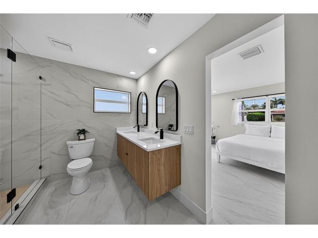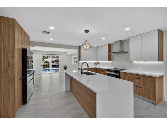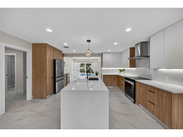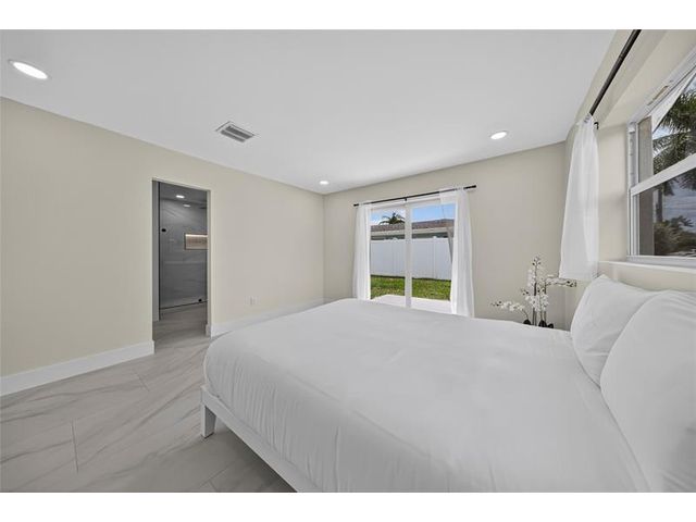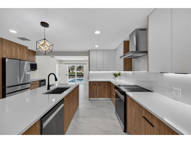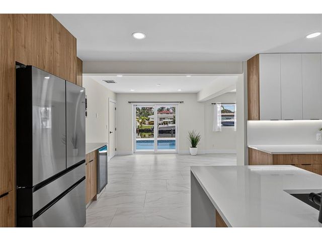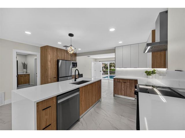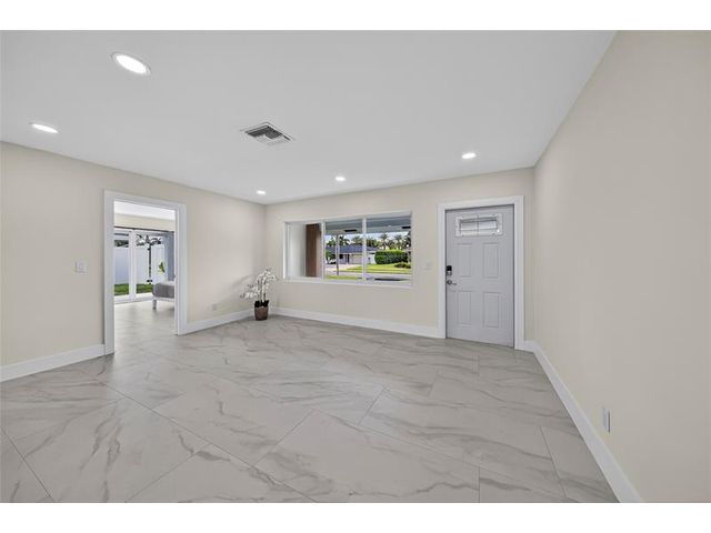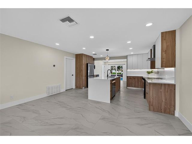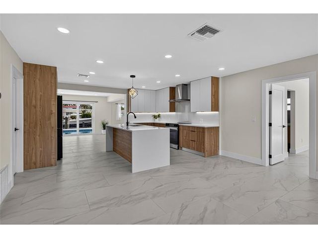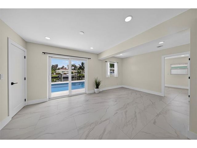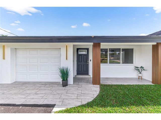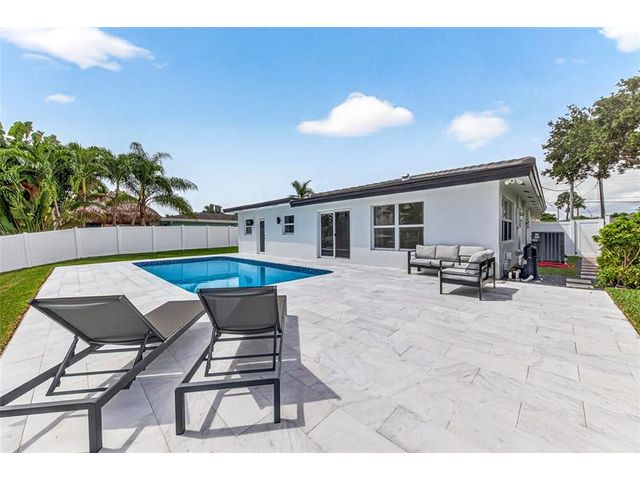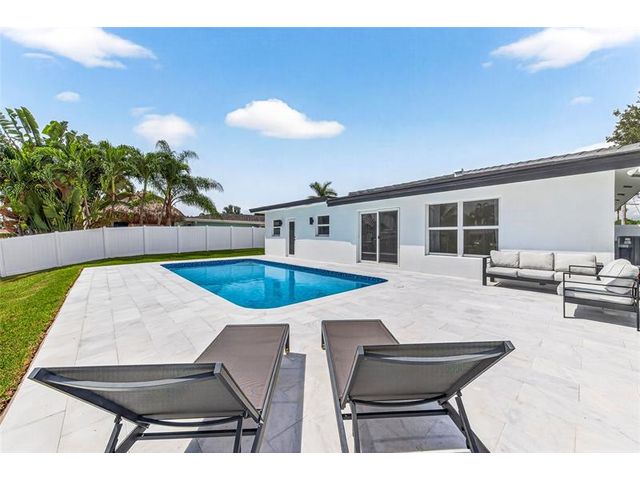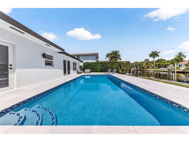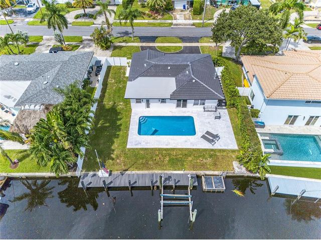 Welcome HOME to the GEM of Garden Isles! This FULLY RENOVATED modern retreat in the heart of Pompano Beach is ready for its new owner! This 3 bedroom 3 bathroom WATERFRONT paradise boasts 68 ft of seawall, private dock with boat lift, prime canal views, travertine patio & newly refinished pool. This property shines with its luxury finishes, rich white oak accents, full IMPACT windows and doors & NEW ROOF. The primary offers a resort-inspired ensuite with double vanity, gorgeous dual head walk in shower, and walk-in closet, complete with sliding doors leading out to your private patio and backyard oasis. FULLY PERMITTED Renovation: NEW ROOF, NEW AC, NEW PLUMBING, NEW INSULATION, NEW KITCHEN & BATHS. Looking for a low maintenance, MOVE-IN READY home or investment property? This is it!