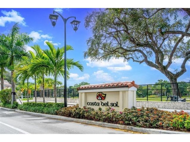 Experience stunning views and a sprawling, lush backyard in this beautifully updated home! Featuring tiled floors in the living areas, a granite kitchen with real wood cabinets, recessed lighting, stainless steel appliances and elegant crown-molded ceilings throughout. Laminate floors in the bedrooms and a screened backyard enclosure create the perfect space for entertaining or relaxing. Costa del Sol offers an unparalleled lifestyle with a clubhouse, 18-hole golf course, lakeside dining, tennis, basketball, pool, and scenic jogging paths. Enjoy peace of mind with on-site management, 24/7 security, and a guardhouse. Maintenance includes water, HD cable, internet, exterior/roof insurance, driveway, paint, trash, landscaping, and all common areas—everything designed for luxurious living.