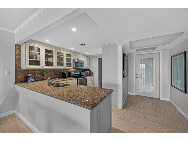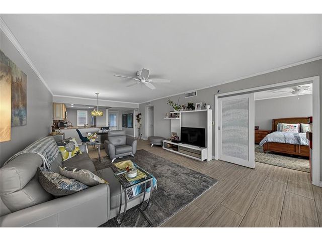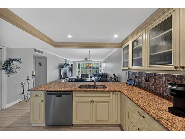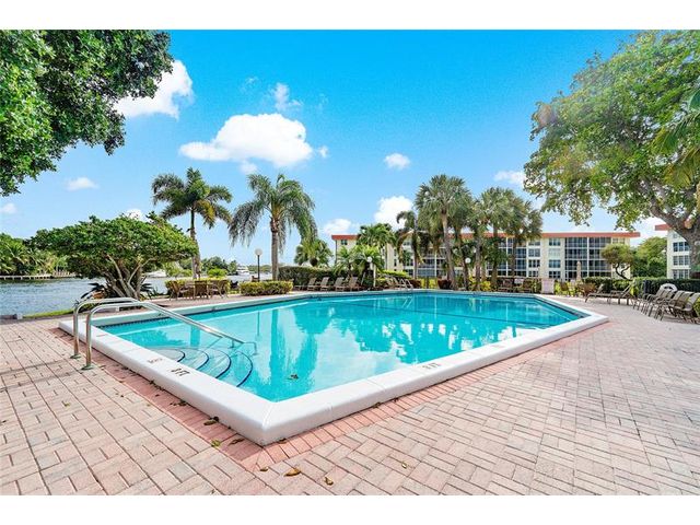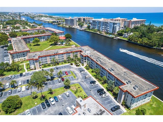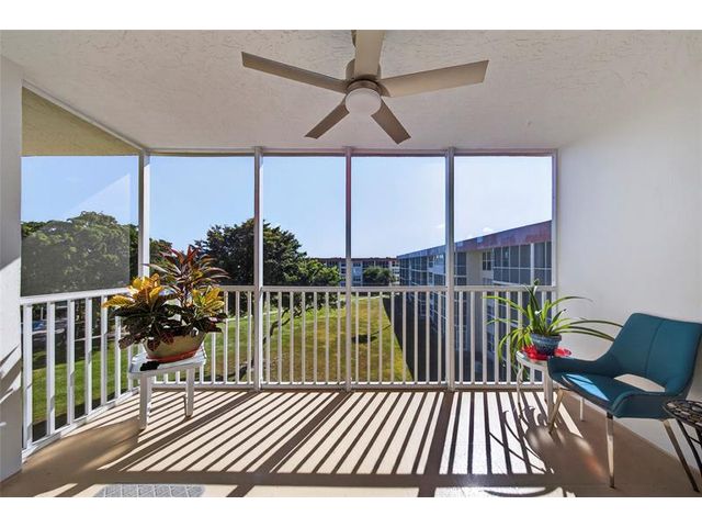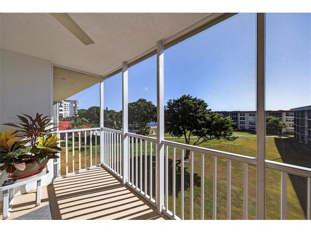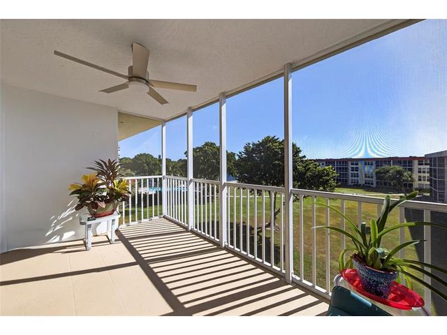 Spacious top-floor 2BR condo in highly desirable Palm Aire, Lighthouse Point. This light-filled unit features tile floors throughout, an updated kitchen with granite counters and stainless steel appliances, and impact windows and doors. Enjoy beautiful views of the Intracoastal, pool, and open green space from the large screened-in balcony. The primary suite offers an updated bath, walk-in closet plus a second large closet, plantation shutters and tons of natural light. Spacious and bright 2nd bedroom with en-suite bath and washer and dryer hookup in the unit! The Community has recently completed extensive exterior and common-area renovations and concrete restoration, including balconies, rails & more. Community has BBQ, Clubhouse, heated pool, dockage, shuffleboard, great parking & more!