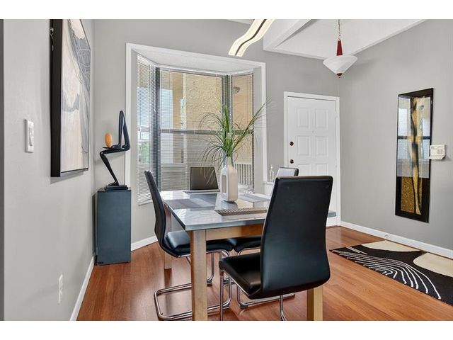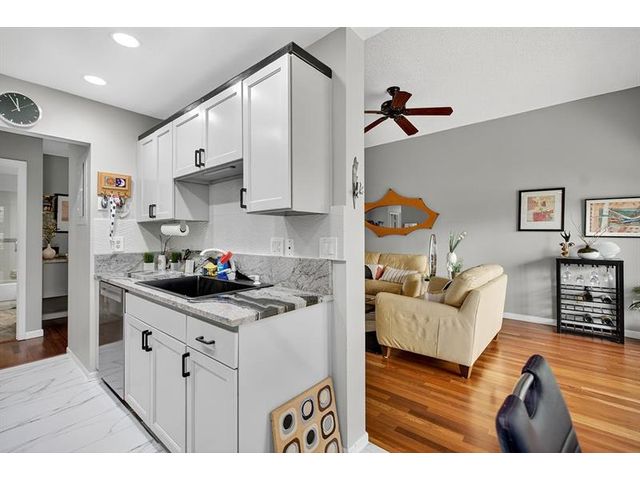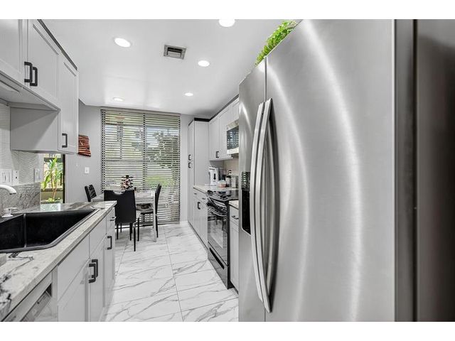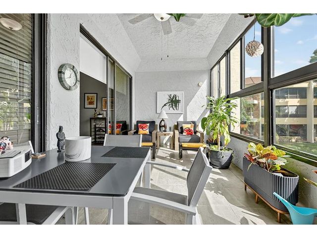 Beautifully updated La Paz condo offered fully furnished at $425K or $399K unfurnished. Features include recently refinished Brazilian cherry wood floors, a 2024 kitchen renovation with granite countertops & 2025 flooring, & very high ceilings—approximately 9 ft in the primary suite. Both bedrooms feature custom-outfitted closets; the primary bath offers a tub and separate shower. Impact windows throughout with accordion shutters on interior sliders. Appliances: fridge 3 yrs, dishwasher < 1 yr, microwave 3–4 yrs, stovetop 6–7 yrs. Water heater 5 yrs, HVAC under home warranty (CAC). Community amenities include 2 pools, tennis, pickleball & hot tub. The building is well-maintained & membership is optional. Can lease ASAP! Check out the video walk through tour!