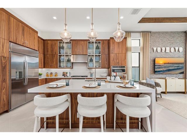 This is a newly completed home with no prior occupants, available for immediate move-in. Experience modern luxury living in this brand-new Bermuda model in the highly sought-after Lotus Edge community. This lakefront home offers a bright open layout, premium kitchen with upgraded cabinetry, Level 2 quartz, GE Profile appliances including 48'' refrigerator, gas cooktop, built-in ovens and chimney hood. Features include impact glass, flat tile roof, designer brick pavers, extended garage, upgraded landscape package, and fully sodded lot. Enjoy resort-style living with access to the state-of-the-art clubhouse, pools, fitness, sports courts, dining and more. A rare opportunity to own new construction on the lake without the long wait.