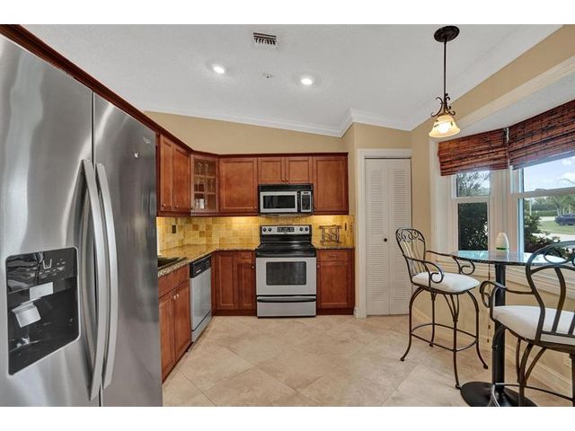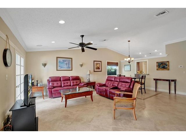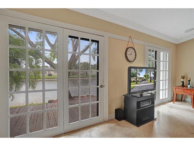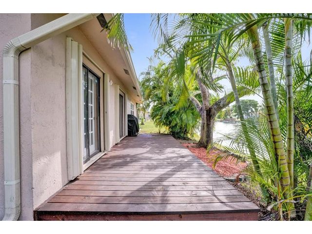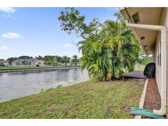Move-in ready waterfront home! Beautifully maintained 3-bedroom, 2-bathroom home with a 2-car garage located in the quiet, all-ages community of Calico Country in West Tamarac. Features include vaulted ceilings, crown molding, porcelain tile throughout living areas, and updated flooring in all bedrooms. Spacious primary bedroom with walk in closet and view of the water. The remodeled kitchen offers granite countertops, wood cabinets, stainless steel appliances, and eat in breakfast area. Enjoy serene waterfront views and stunning sunsets from your private wood deck. HOA includes lawn care, pool, dog park, and playground. Pet-friendly community. Low HOA! A must see!