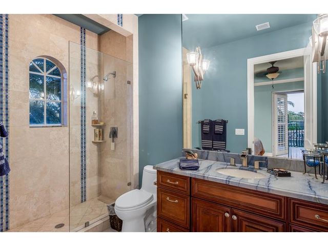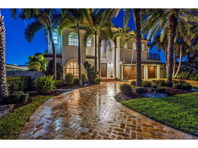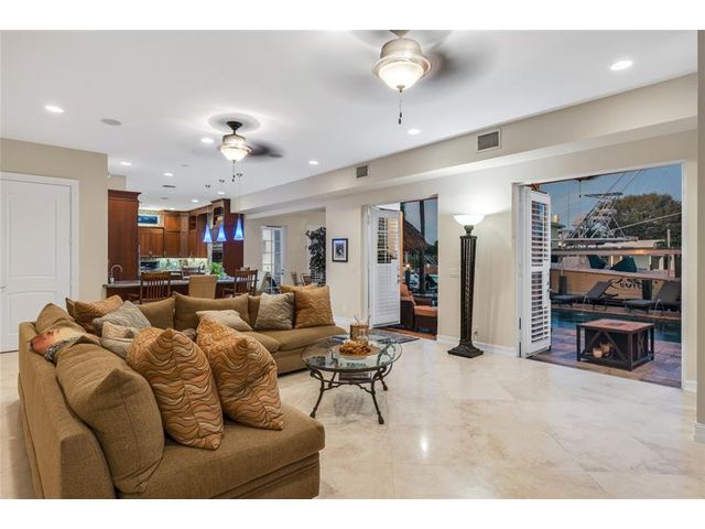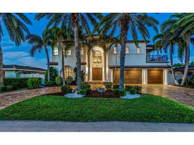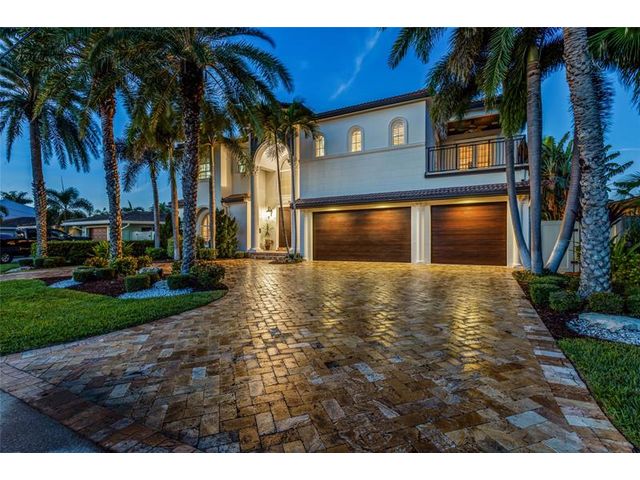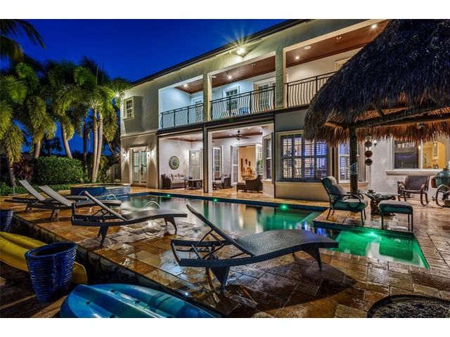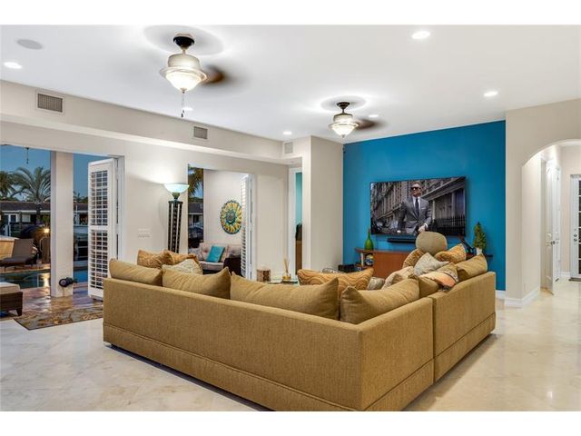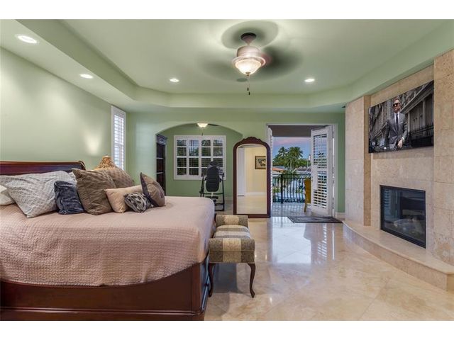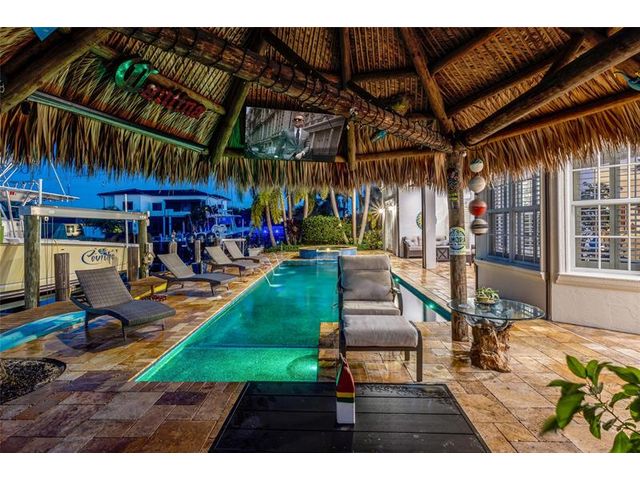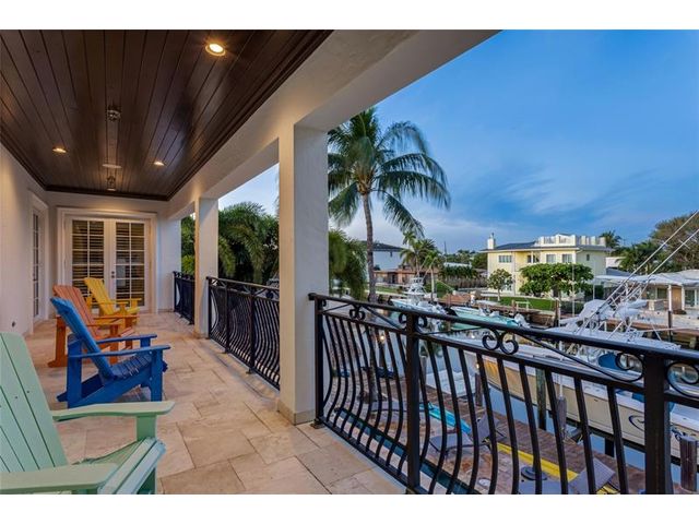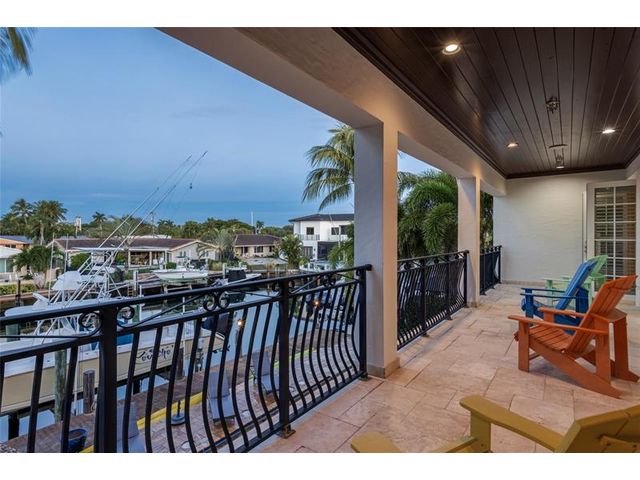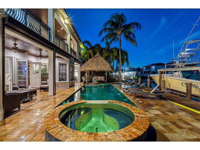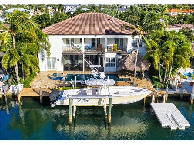 Exceptional Mediterranean deepwater estate sited on 80’ of waterfrontage, offering 6 bedrooms, 6.1 baths and 5,546± SqFt of refined living. Light-filled interiors feature a flexible floorplan with both upper- and lower-level living, including a second-level primary suite with private sitting area, fireplace and expansive waterfront balcony. The custom kitchen showcases quartzite countertops, Wolf gas cooktop, custom cabinetry, and is complemented by a waterfront breakfast nook and wet bar. Additional features include impact windows and doors, new paint, elevator, and 3-bay garage. Outdoor living is enjoyed on a marble-pavered patio with covered loggias, refinished heated pool with spill-over spa, custom tiki hut, and a 70’ composite yacht dock just minutes to the Hillsboro Inlet.