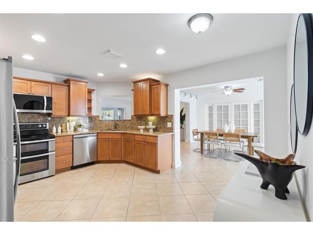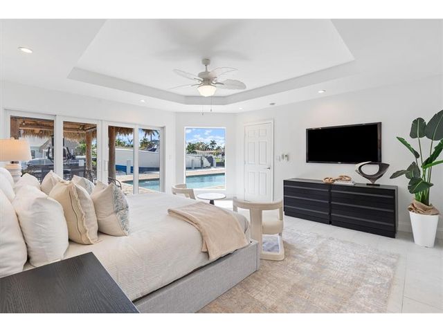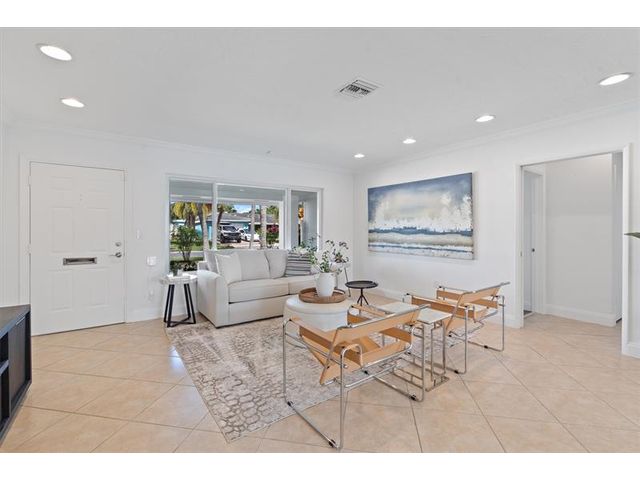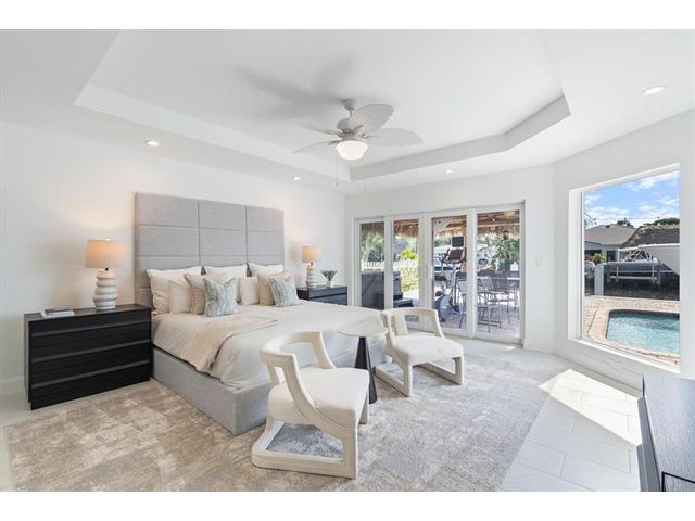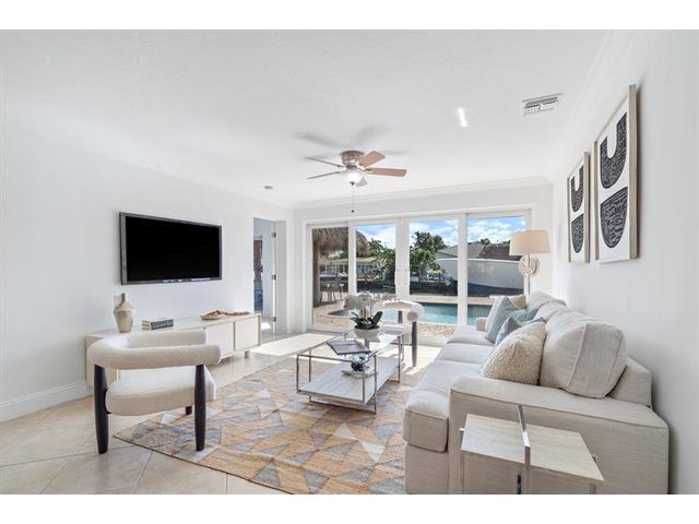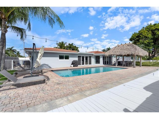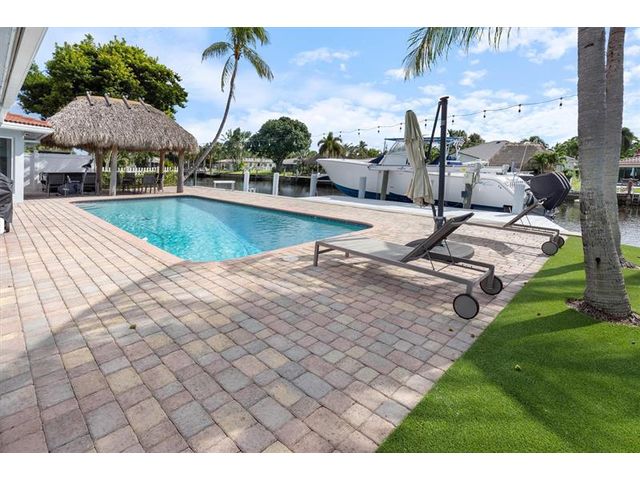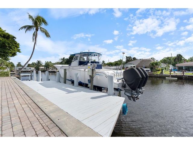 Beautifully updated 3BR/3BA ocean-access waterfront home on a quiet cul-de-sac with 65 ft dock, newer 20,000 lb lift, raised seawall, heated pool, jacuzzi, and tropical turf yard. Two waterfront primary suites, newer barrel tile roof, and full impact windows/doors. Oversized 2-car garage with great storage. Spacious kitchen with stainless appliances, granite counters, and light cabinetry. Large interior laundry room. Outdoor furniture and Generac 17500 included. Garage has ac and two electric car plugs 6-20 and 14-40. Move-in ready and close to the beach!