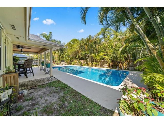 Welcome home to this beautifully remodeled 3-bedroom, 2-bathroom treasure in the desirable Oak Ridge community! This property offers the perfect blend of modern updates and outdoor enjoyment. Step into your private, fully fenced-in sanctuary featuring a refreshing pool and a spacious patio, complete with charming T&G ceilings and surrounded by mature landscaping perfect for entertaining or relaxing. The kitchen has been completely remodeled to impress, boasting sleek new countertops and shining SS appliances. Enjoy the sought-after split floor plan for privacy, highlighted by vaulted ceilings, elegant wainscotting touches, and classic plantation shutters. NEW ROOF (2025). No HOA Restrictions! Bring all your land and sea toys.