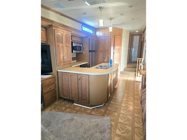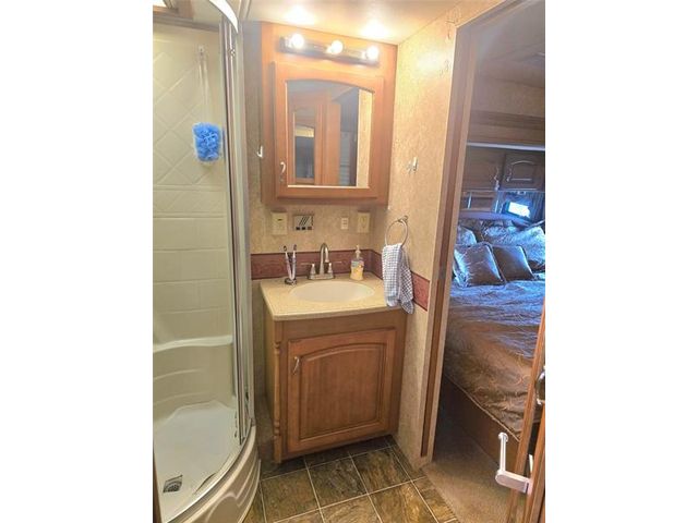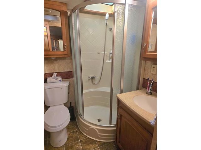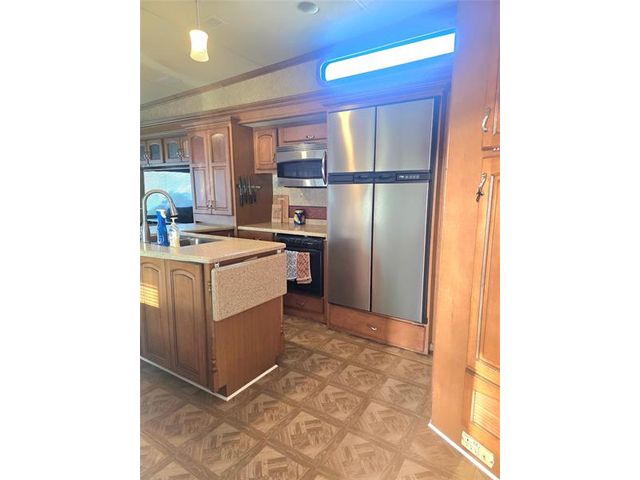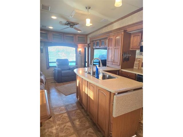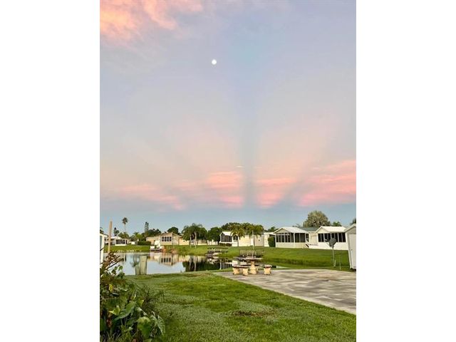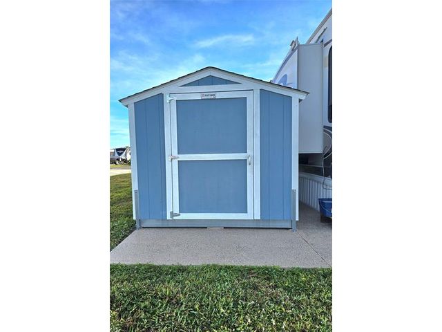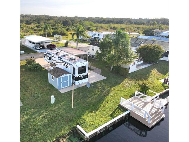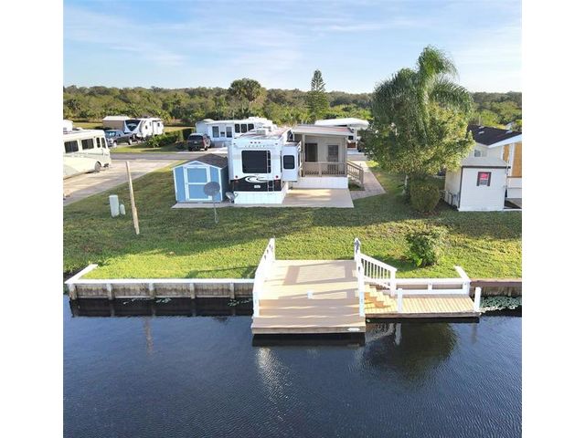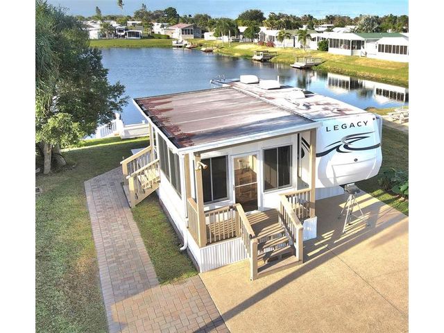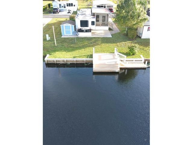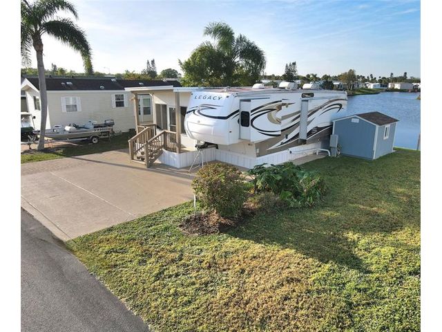 ~Blue Cypress Golf & RV Resort~ This 38-foot Legacy by Jayco fifth wheel offers comfortable living with 1 bedroom featuring a California king bed and 1 bathroom. The home includes 3 slide-outs for spacious interior living and is completely furnished and all major appliances. 2 AC units ensure comfort. The property features a seawall, composite dock, and painted driveway with decorative flakes. Additional amenities include an 8x10 storage shed, a 12x12 office/patio space, and a cedar closet. The HOA provides amenities, including a pool, lawn care, sewer, water, a pickleball, and a 9-hole golf course. Located at beautiful Lake Okeechobee, this turnkey property offers the perfect blend of comfort and recreation for those seeking a relaxed Florida lifestyle. All measurements are approximate.