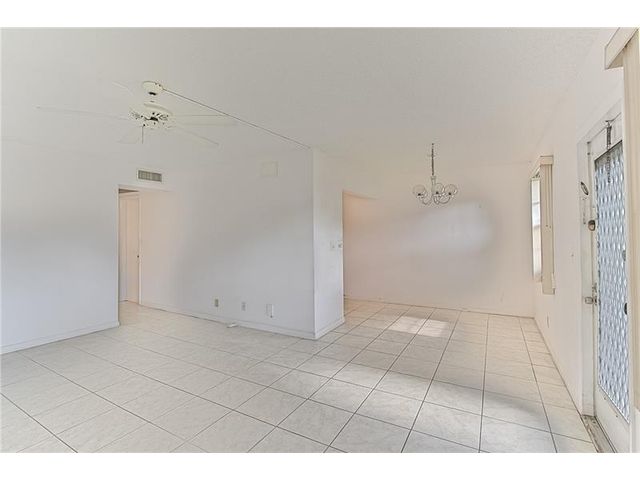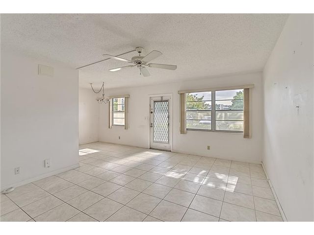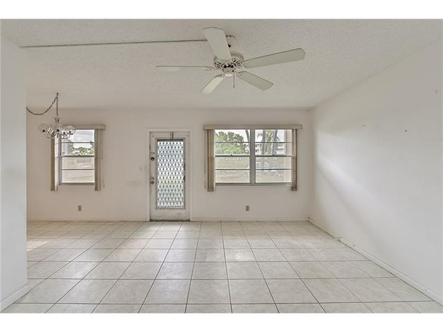 Super Convenient Ground Floor Unit in Great Condition. Available Furnished, Spacious and Clean throughout, Bedrooms now have Tile. Large Screened-in-Patio with Wind Shutters for Protection provide Extra Space. Full Bathroom features a Walk-In Bathtub for Easy Access. New Air Conditioning unit and New Water Heater! Parking Spot is directly in front of unit. Grantham E is one of the Most Desirable Spots located in the Heart of Century Village. Only Steps to the Pool. Century Village is an Extremely Active 55+ Community offering Resort-Style Amenities: Cafe, Clubhouse, Tennis, Pickleball, Craft/Painting Workshops, Hobby Classes Fitness Centers, Free Movies, Free Shuttles