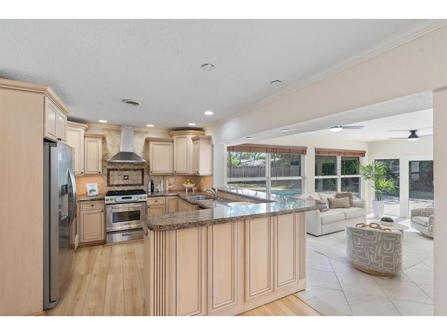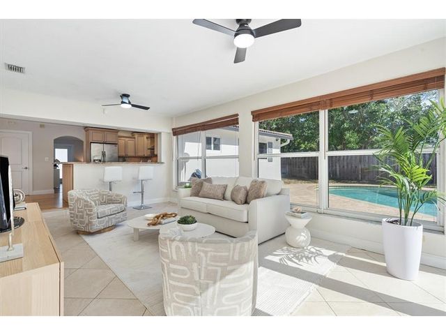 Beautifully maintained 3/2 home on an oversized, fully fenced corner lot with a sparkling pool and impact windows. Features a split floor plan, natural gas stove, tankless gas water heater, and energy-efficient upgrades. The kitchen includes custom cabinetry, bar-height seating, high-end appliances, and a built-in wine chiller. Interior highlights: custom blinds, dimmer switches, interior laundry, new fans, and updated dining lighting. Exterior perks include gated side access for a boat or trailer, separate irrigation system, storage shed, and an oversized 1-car garage. Located in a desirable neighborhood with no HOA, this home offers flexibility, character, and thoughtful features throughout.