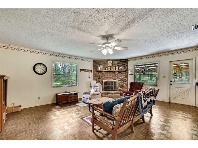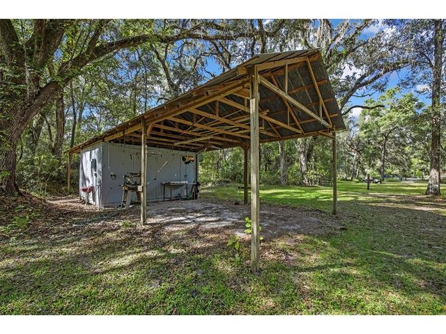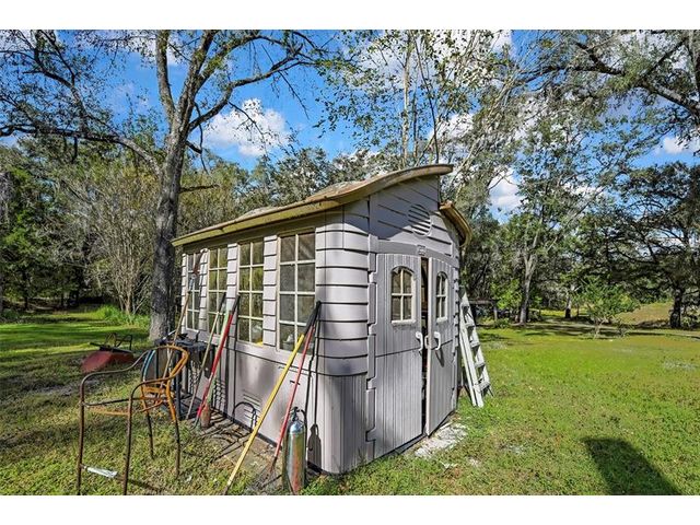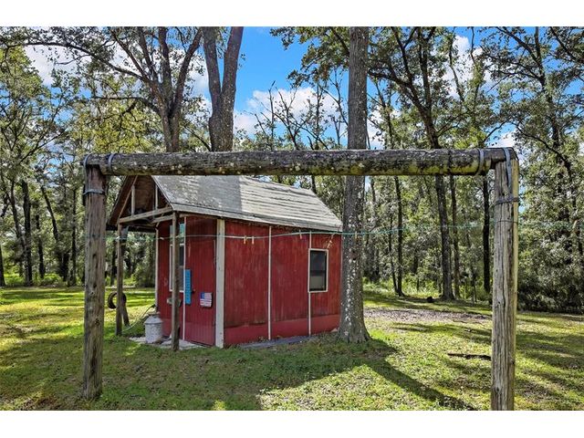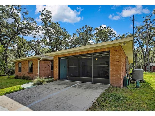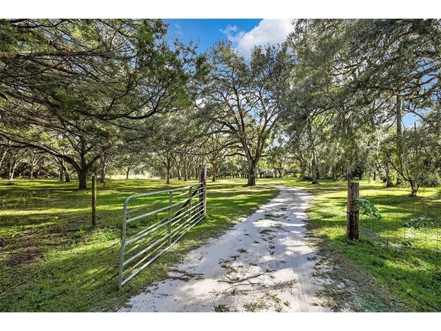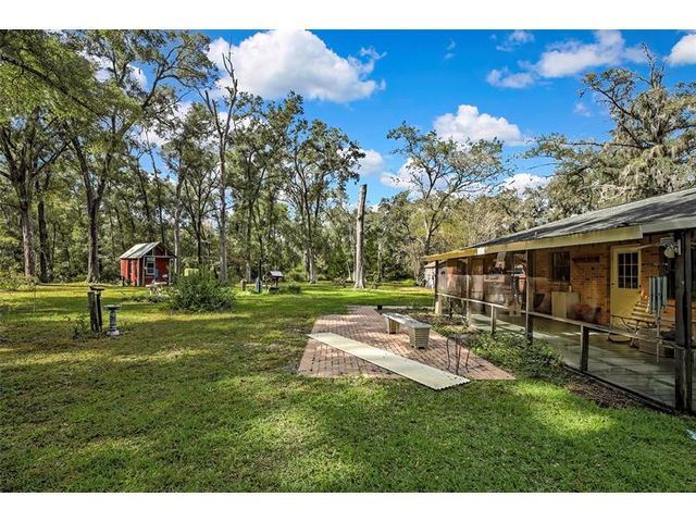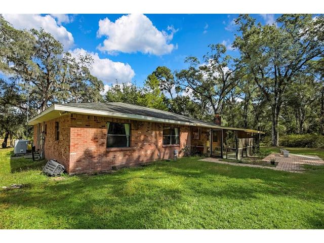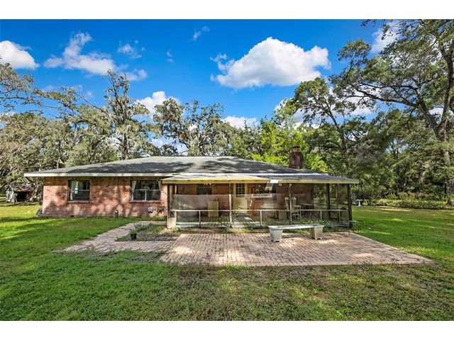 Welcome home to this charming three-bedroom, two-bathroom retreat nestled on 4.9 beautiful, tree-lined acres. This fully fenced property offers peace, privacy, and plenty of room to roam. Enjoy tranquil mornings by the pond or relaxing evenings on the screened-in patio, surrounded by the sounds of nature and the occasional deer passing through. Inside, you'll find a warm and inviting living room with a fireplace, a kitchen featuring stainless steel appliances, and plenty of space for comfortable living. The property has a two-car garage, a detached workshop, a storage shed, and a greenhouse. Perfect for hobbies, projects, or gardening enthusiasts. A short drive to Disney, Gainesville and Tampa. Experience country living at its finest, with all the comforts of home waiting just for you.