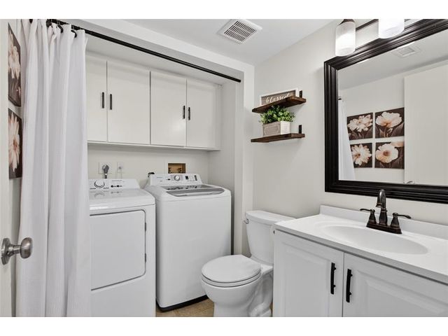 Beautifully updated 3-bedroom, 2.5 bath townhome featuring NEW Roof (2024), NEW water heater (2025), HVAC (2019) & is MOVE-IN ready! Enjoy fresh painted interior & brand-new flooring throughout second floor & stairs! No Carpet! The bright, open FIRST floor offers spacious living & dining areas, and one of three BEDROOMS. Kitchen provides ample storage, stainless steel appliances and refurbished, white kitchen cabinetry. First floor, half bathroom features laundry & extra storage! Upstairs bedrooms offer plenty of natural light! Oversized primary bedroom ensuite features walk-in closets and renovated bathroom, with modern, double vanities and glass enclosed shower. Low HOA fees include plenty of amenities- Pool, clubhouse, fitness center & more!
