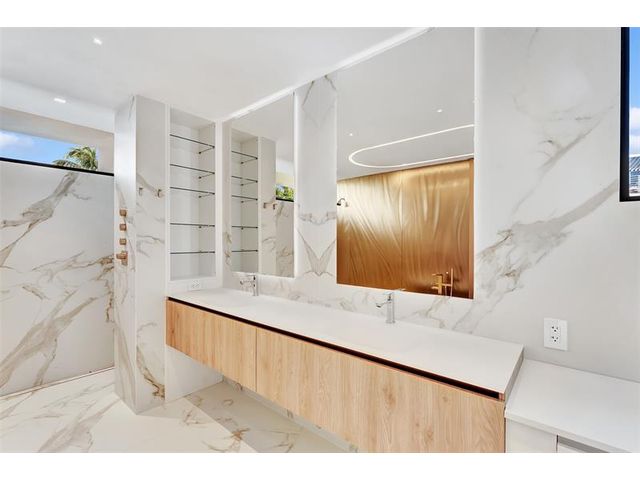 An architectural showpiece in the prime location of Historic South Miami Ave, this 5700 sqft gated estate offers 6 bedrooms, 14’ celings, a 4 stop elevator, 6 car garage, staff quarters with its own entrance and a safe room. The builder was building this home for his personal home no expense was spared, large format porcelain, birch floors, custom closets, floating cabinets and Scavolinii sinks in all the baths, natural wood and marble accents, patios off the bedrooms. A chef’s kitchen with marble island, built in dining table, Sub Zero and Wolf appliances, & large induction cooktop, griddle and a 2 burner gas stove, 2 outdoor kitchens and a rooftop with views of downtown Brickell. Abundant natural light in the entire home with floor to celing & accent windows, this home is one of a kind!
