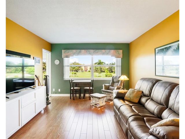 Charming 1 bed, 1 bath condo in 55+ Ashley Hall, Lauderhill East. Enjoy wood and tile flooring throughout, a spacious bedroom, and impact windows with a tranquil canal view on the golf course. The balcony is equipped with roll-down shutters for storm protection. Roof newer (2023), AC updated in 2004, and water heater nuevo (2024). Bright, well-maintained unit with low maintenance fees and access to community amenities. Ideal for easy living in a lively, friendly enclave.