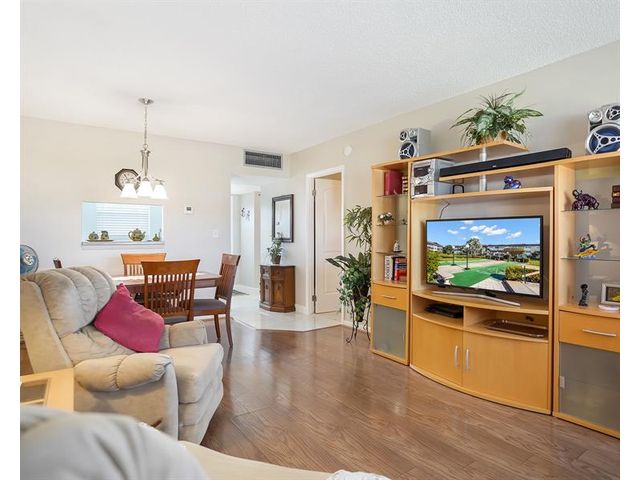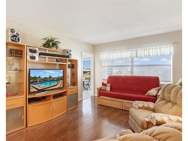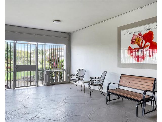 Gorgeous 1/1 penthouse unit in 55+ Poinciana Gardens, Hawaiian Gardens. Enjoy an updated home with an enclosed balcony, impact windows, and ceramic tile plus wooden flooring throughout. Spacious bedroom, well-kept bathroom, and seamless living area with stunning fountain and lake views. Water heater replaced in 2016. Building will have a new roof in January 2026. HOA $526/mo includes internet. Prime 55+ community with serene grounds, easy access to shops, and active social scene. Your bright, maintenance-friendly retreat awaits.