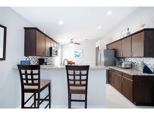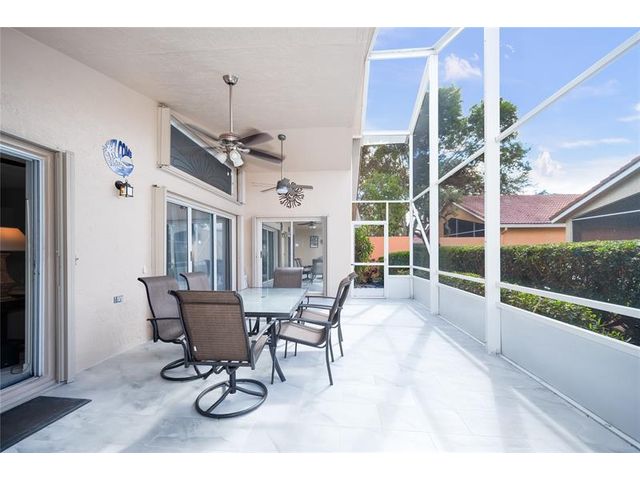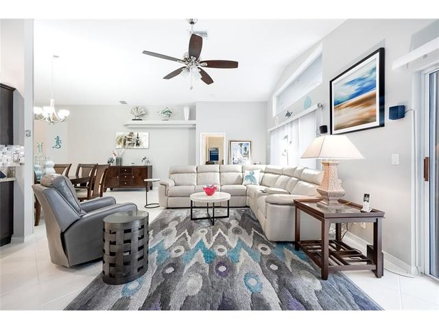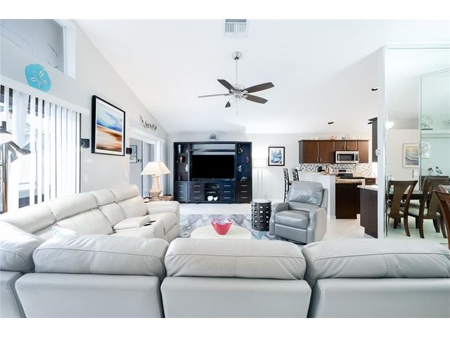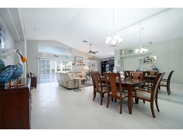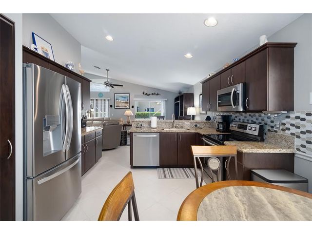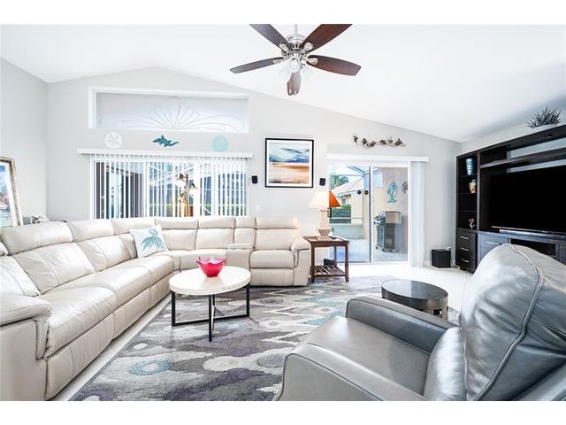 This beautifully maintained and upgraded 3 bedroom home offers comfortable stylish living in a vibrant 55+ community. A new roof, new outdoor tile on the lanai, and updated kitchen cabinets provide peace of mind and modern appeal. The open living area features vaulted ceilings, creating a bright and spacious setting perfect for relaxing or entertaining. Located in a highly sought-after active adult community, residents enjoy a wide array of entertainment, recreational facilities and clubs, ensuring there's always something to do and new friends to meet. Move-in ready and thoughtfully updated, this home is the ideal choice for enjoying the Florida lifestyl