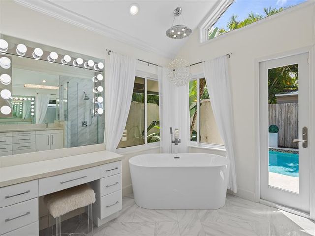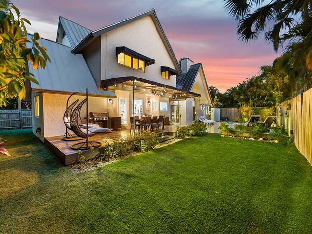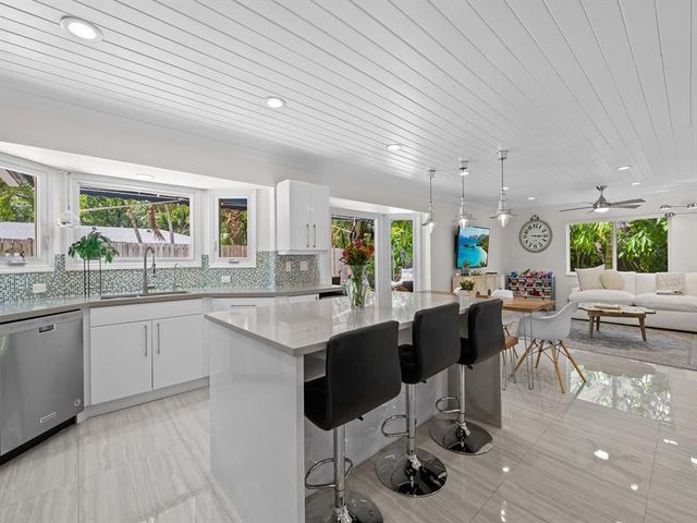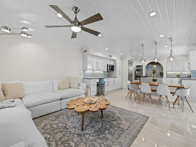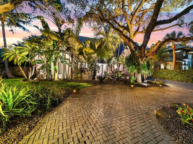 Discover Old Florida elegance in River Landings, a rare 19-home gated enclave in Fort Lauderdale known for its tree-lined streets and timeless feel. This home blends modern luxury with architectural charm in a premier deep-water community. Vaulted ceilings enhance the open layout, chef's kitchen boasts custom cabinetry, double ovens & oversized refrigerator. Updated baths, impact windows and an 18-foot fireplace create refined living spaces. The primary ste features dual walk-in closets and a spa-like bath with designer lighting & soaking tub. Backyard offers a heated saltwater pool, spa, sun shelf and a covered lanai, all set within one of Riverland’s most picturesque streets. Just a short walk to the river and your 45ft boat slip, offering deep-water ocean access with no fixed bridges.