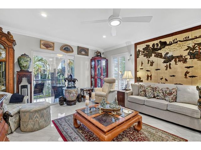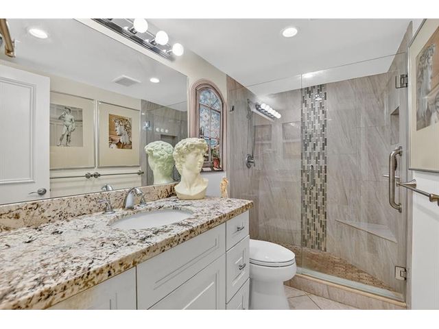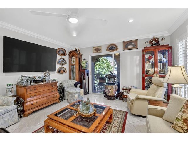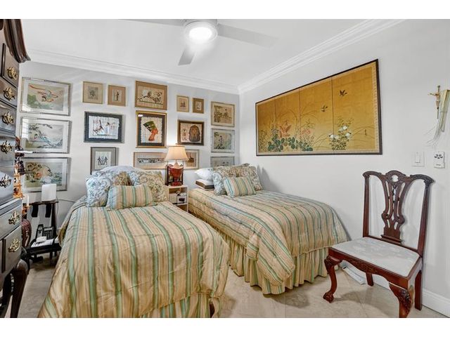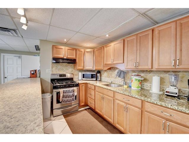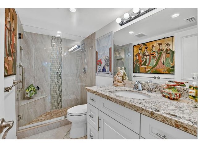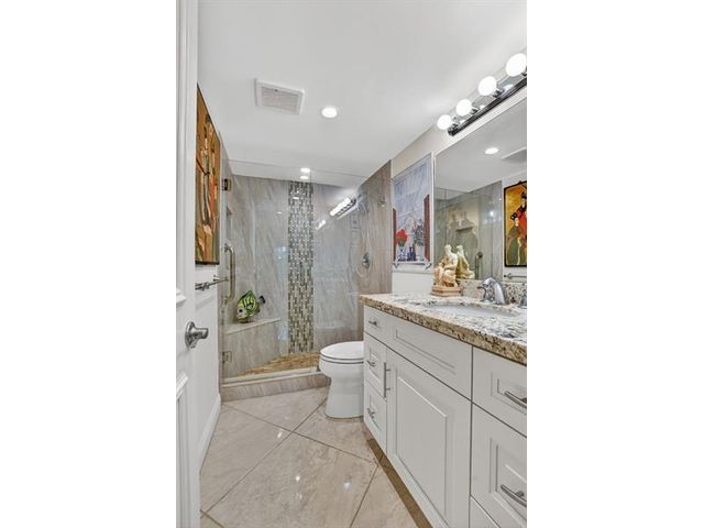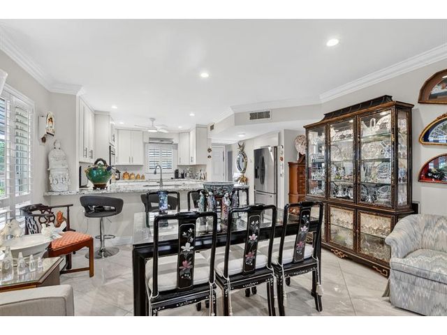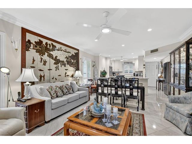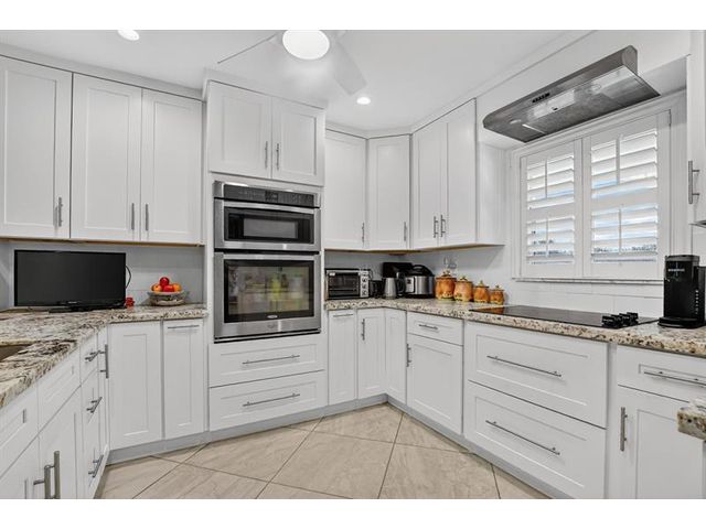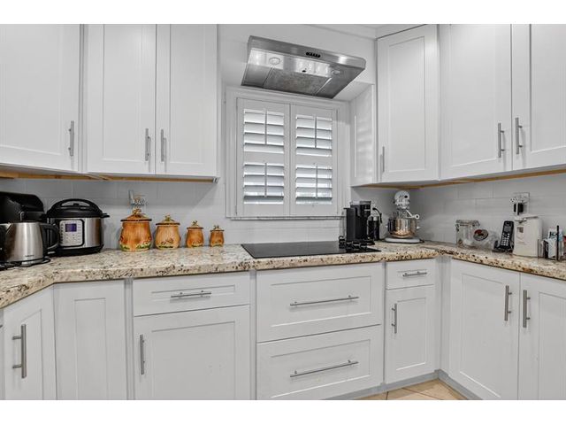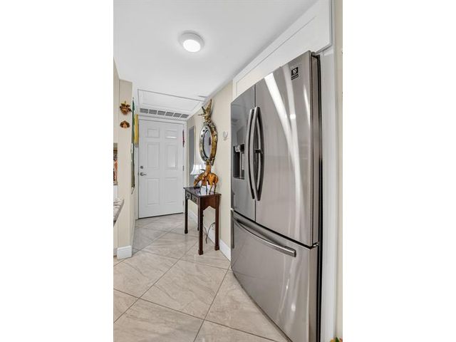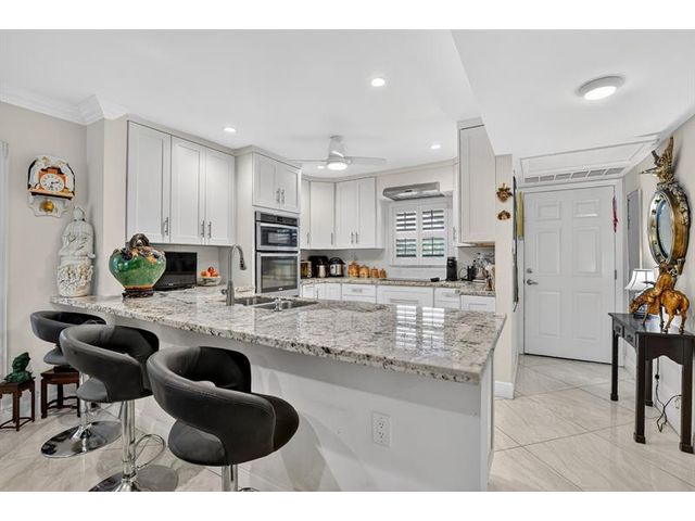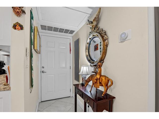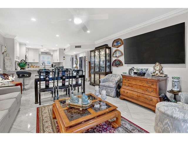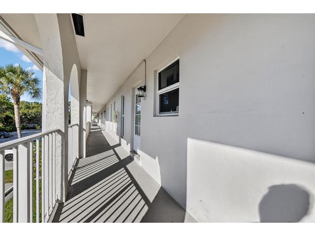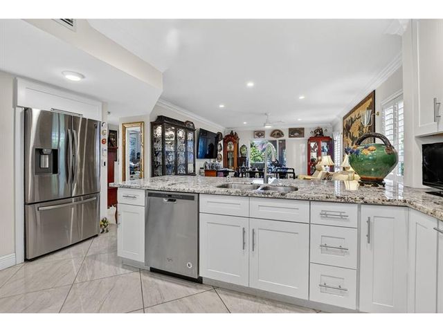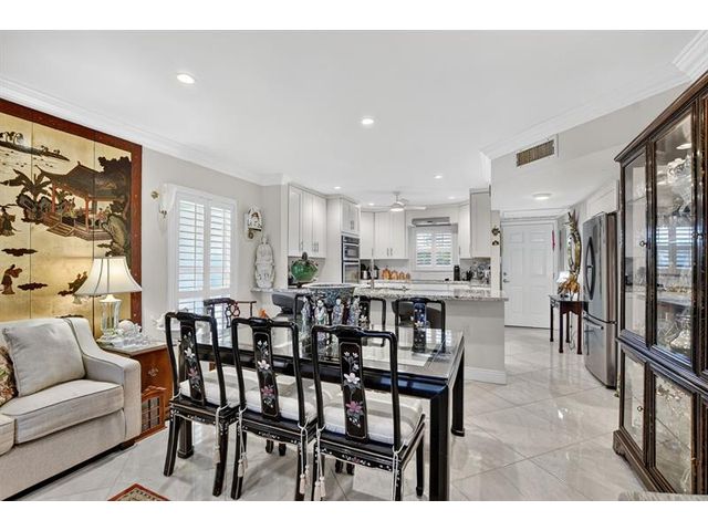 Fully remodeled 2nd floor corner unit near Dixie and Federal Highway on 20th. Great location with shopping, dining, entertainment, and beach options all within 5 minutes. Kitchen has been opened, connecting it to the dining and living areas. No popcorn ceilings! Crown moulding throughout, beautiful tile floors, white cabinets, stainless steel appliances, impact windows and roller shades for hurricane protection, tankless water heater, and in-unit washer/dryer. The primary bedroom has an ensuite bathroom with shower and access to the screened porch overlooking the greenspace leading to the pool. The 2nd br is spacious and has a full wall of closets. Parking space right at the bottom of the stairs. Super East Boca Raton location and great location within the community too!